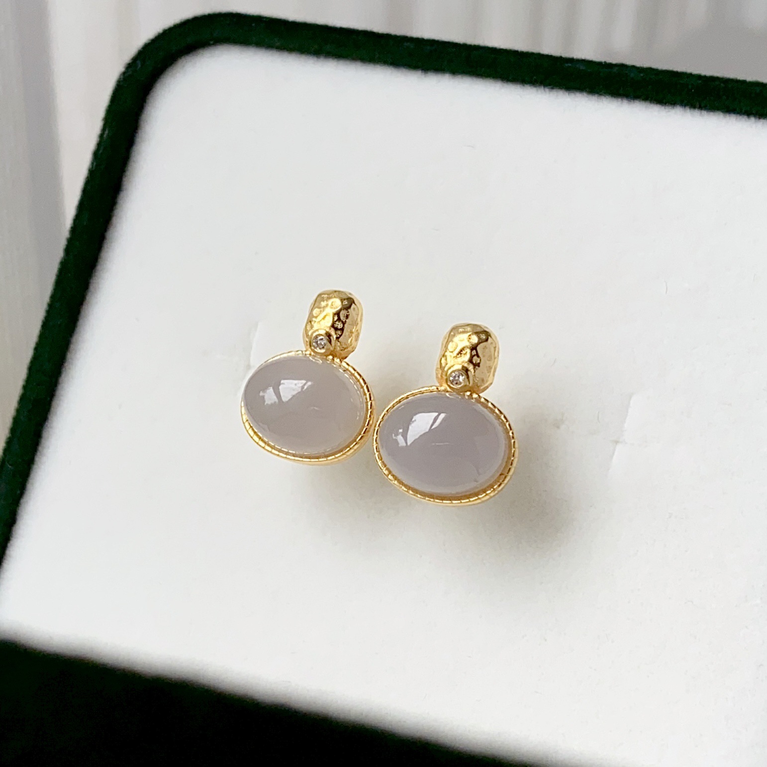天然和田玉煙紫ピアスS925銀モザイク煙紫卵面イヤリング復古女性モデルは鑑定証明書を出すことができる