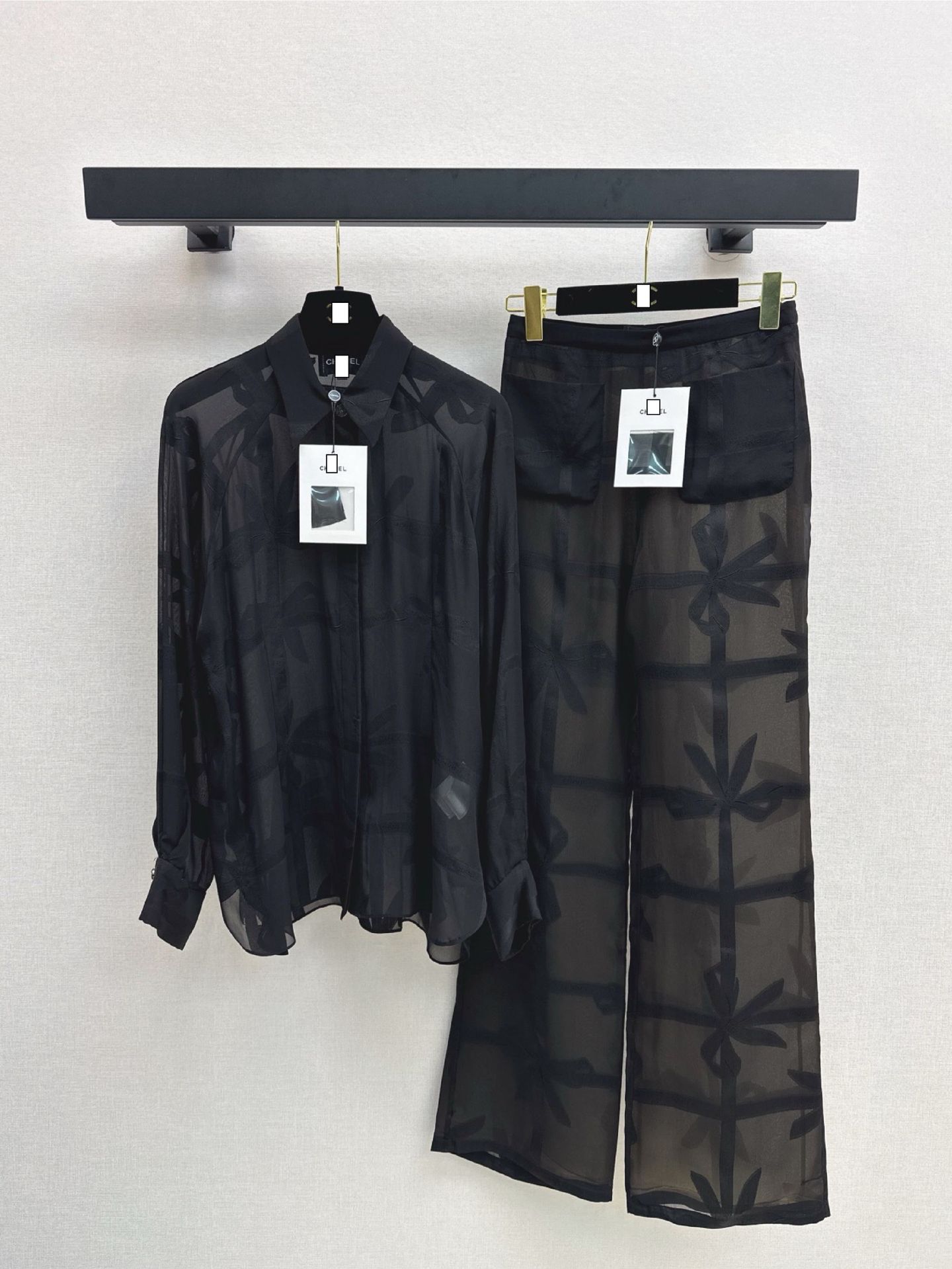 深圳南油2025春夏走秀同款套装小香风翻领真丝衬衫+长裤