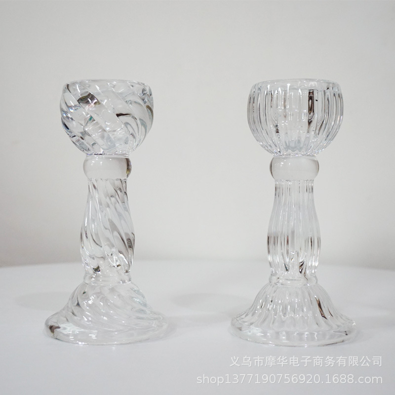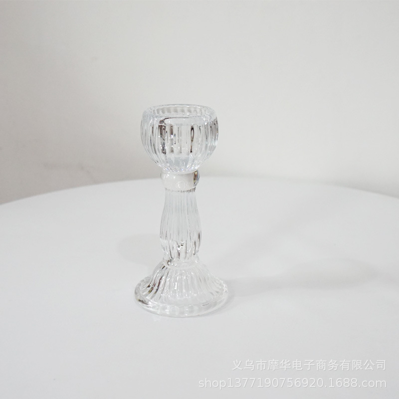フレンチレトロな縦縞の背の高いクリスタルキャンドルホルダーガラスアロマキャンドルライトディナー結婚式の撮影小道具