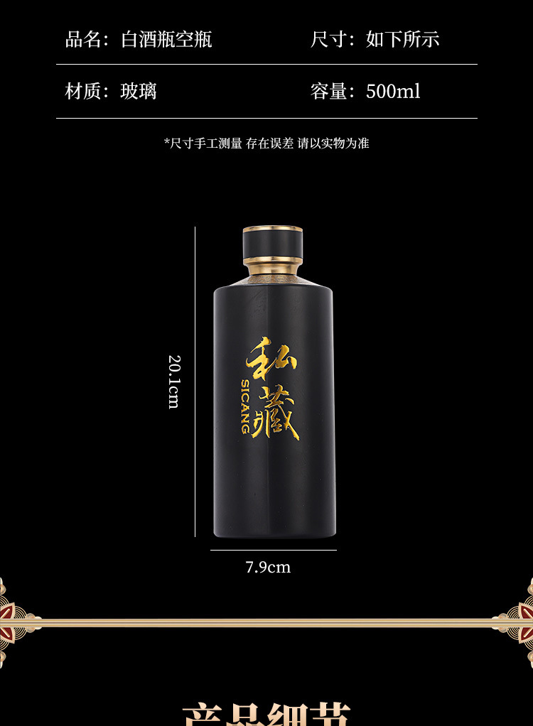 500ml私藏白酒瓶一斤装空酒瓶商务酒瓶高档酒瓶礼盒包装厂家批发
