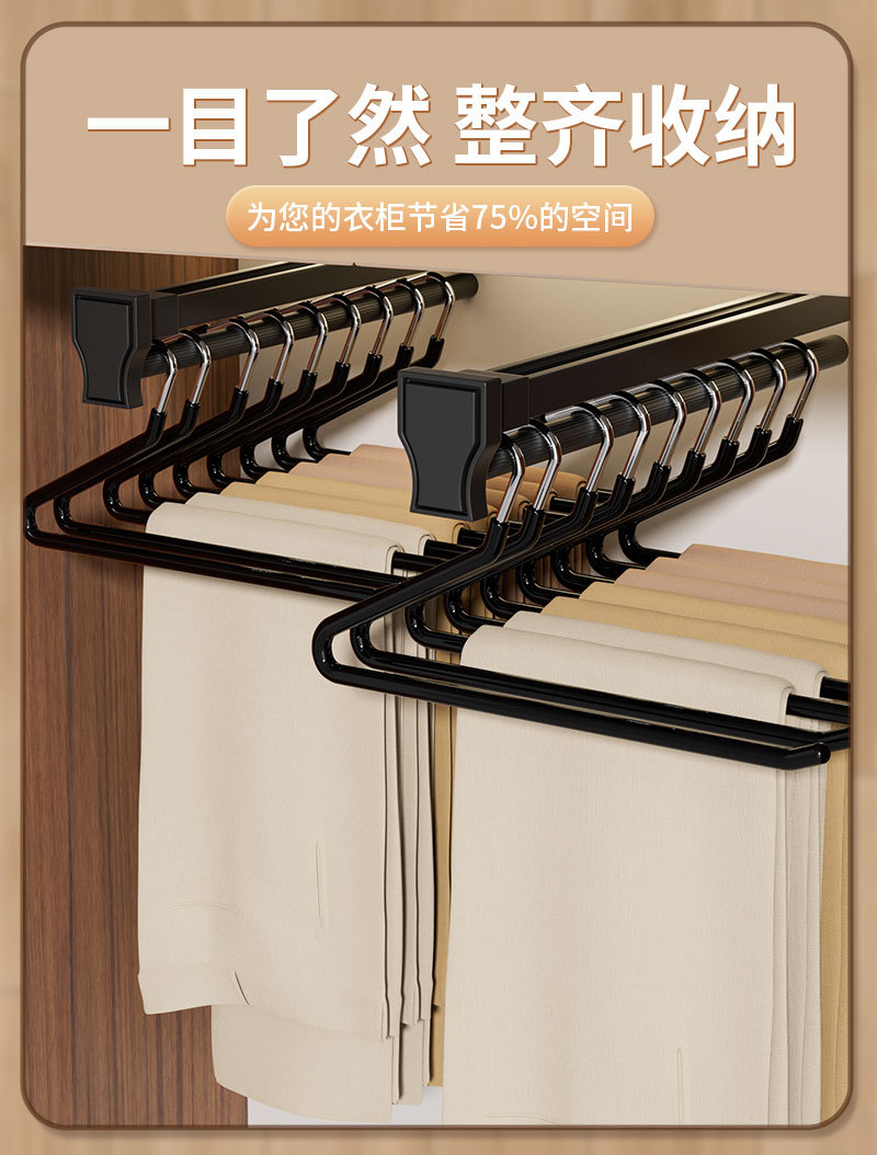 ガチョウの形のズボンの棚の跡がない滑り止め家庭用の引き出し式のズボンはステンレスの太いタンスの字形を掛けてズボンを掛けて収納します。