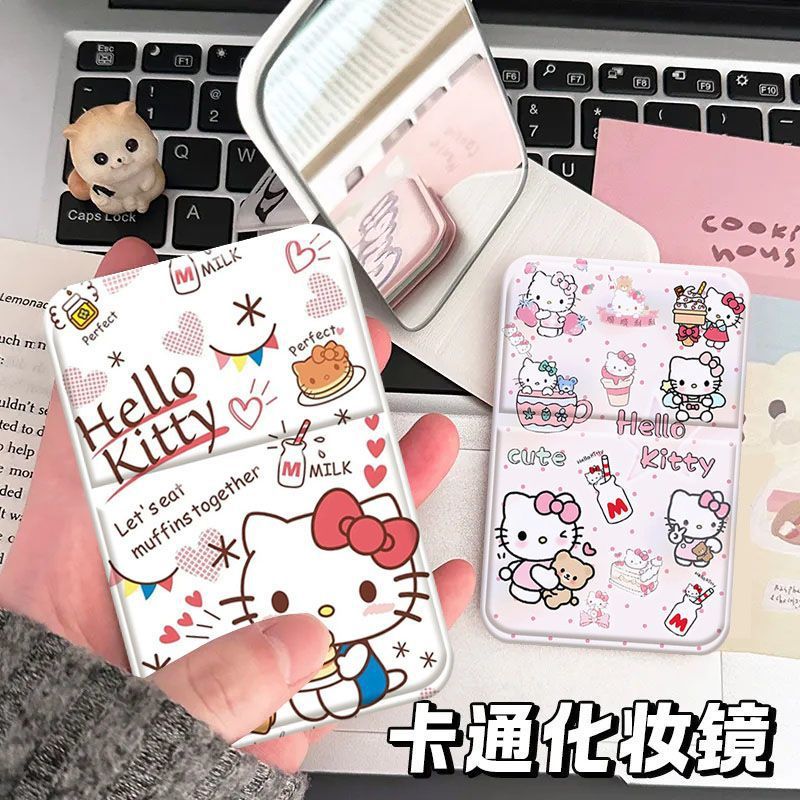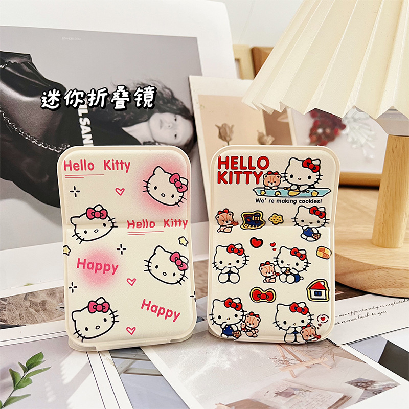 ハッピーハローキティ女子学生寮オフィスポータブル小型ミラー折りたたみデスクトップミラー化粧鏡
