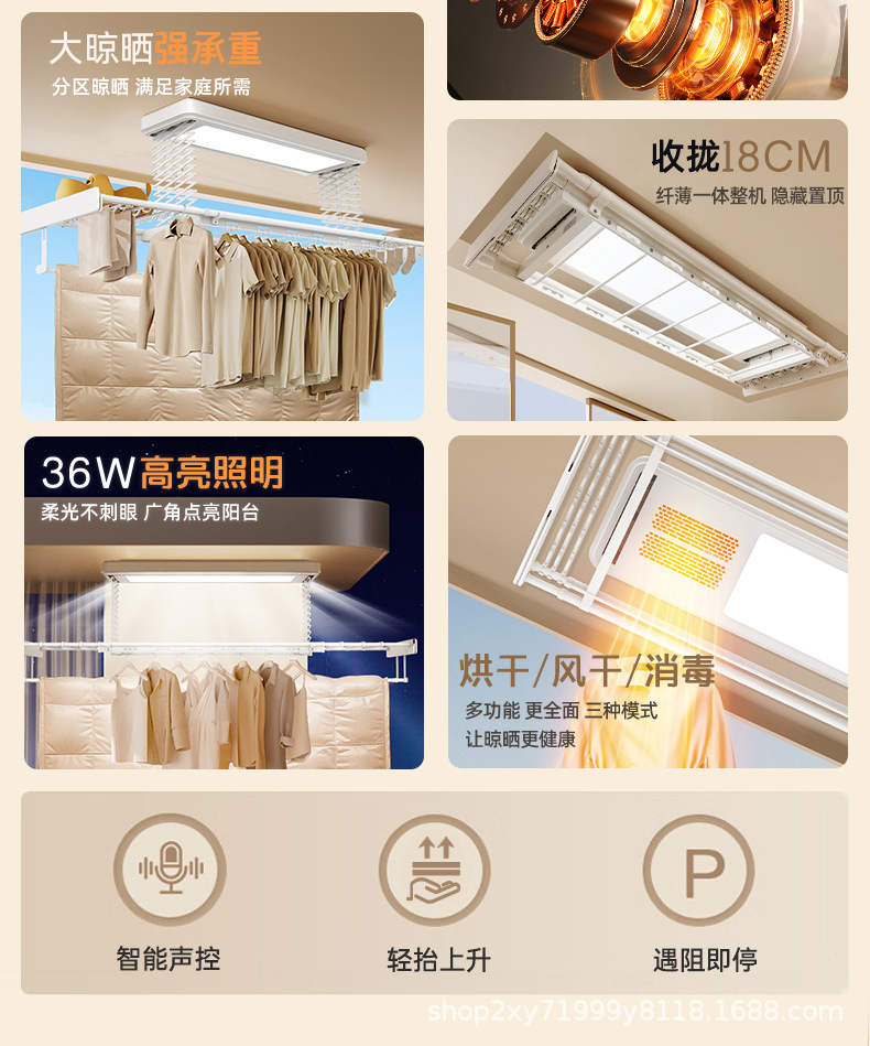 スマート衣類乾燥ラック、二重照明、強化・暗号化昇降装置、乾燥・消毒、音声制御、布団棒、メーカー直送