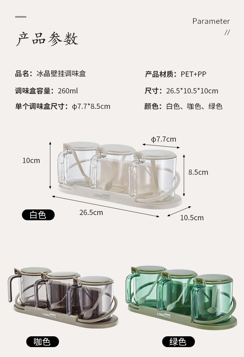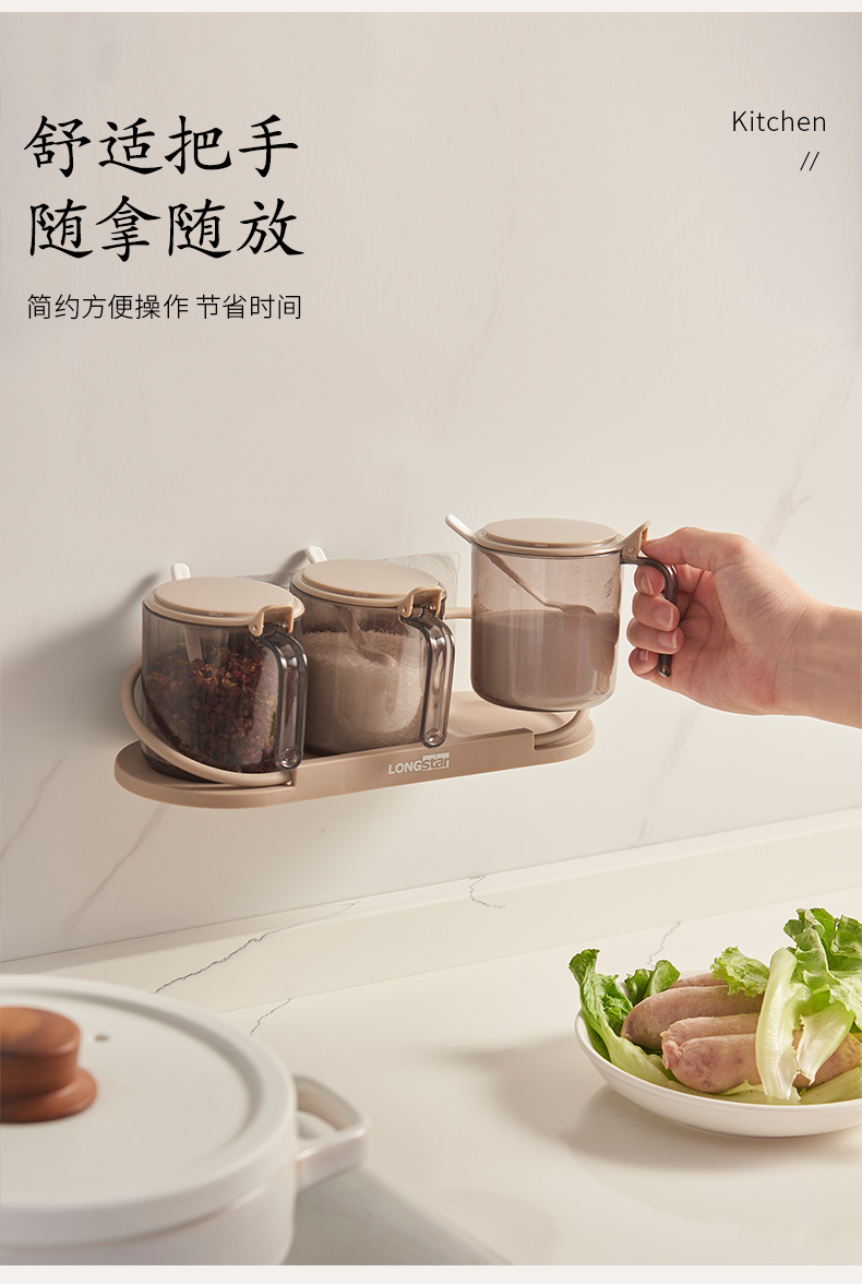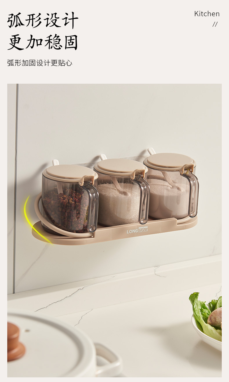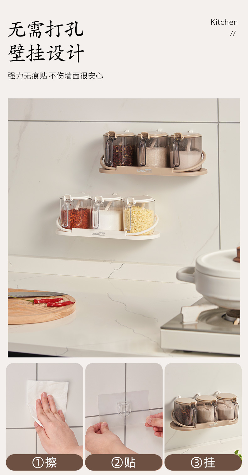 キッチン壁掛け調味料ボックス、家庭用3コンパートメント調味料ボックス、家庭用1コンパートメント、1スプーン、パンチフリーの高価値調味料瓶