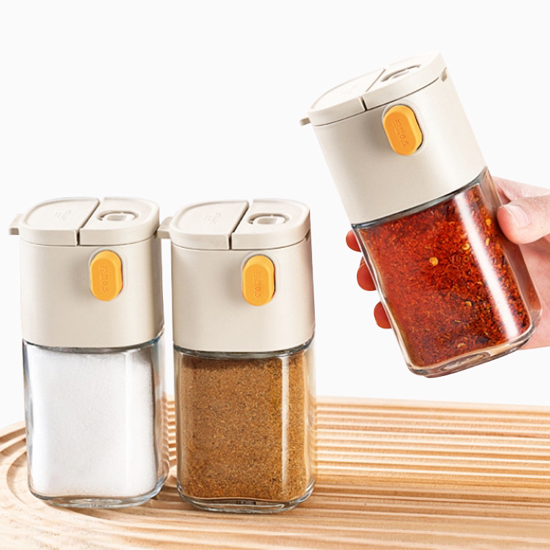 調味料ボックス キッチン プッシュ式 家庭用精密定量調味料瓶 蓋付き 密閉分注ボトル 調味料塩瓶