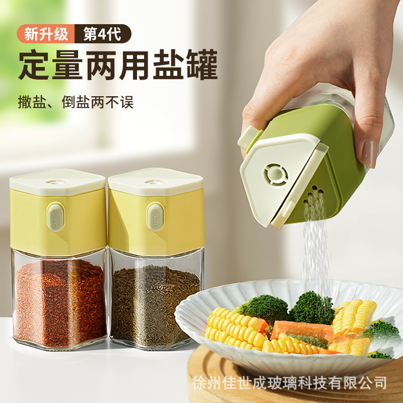 両用ガラス定量調味缶キッチン家庭用制御塩瓶密封防湿調味料箱塩缶調味料缶缶
