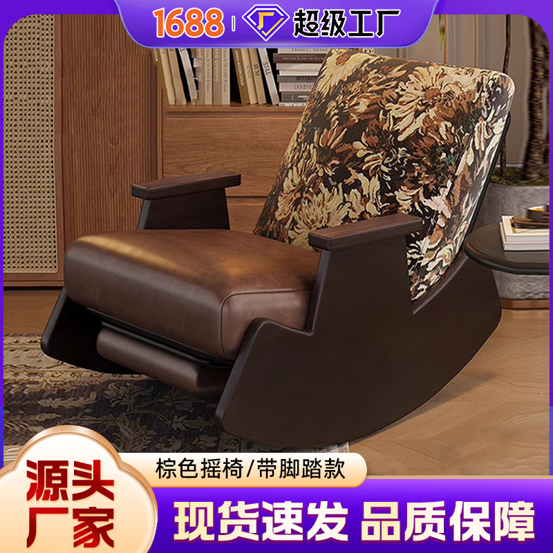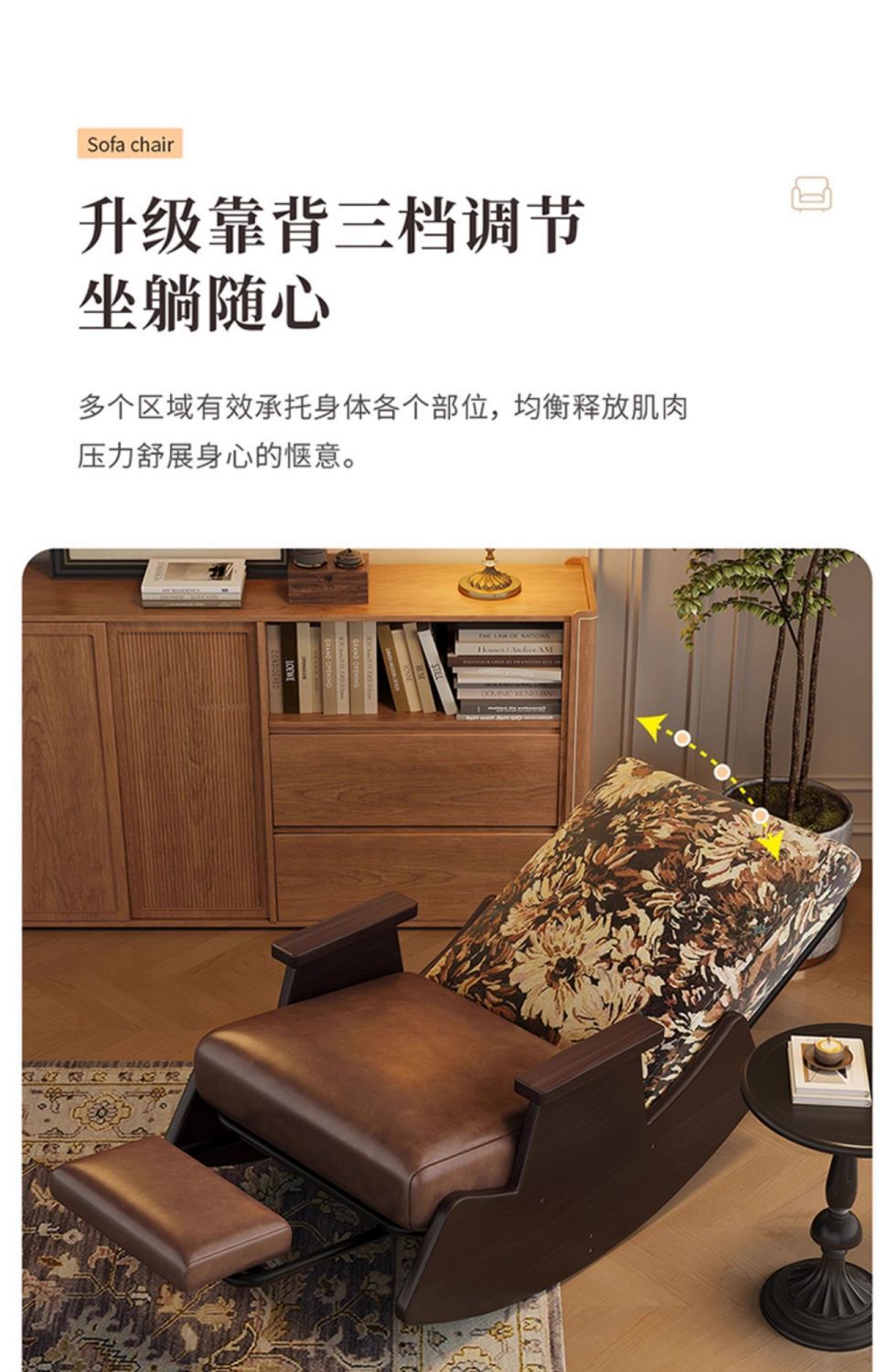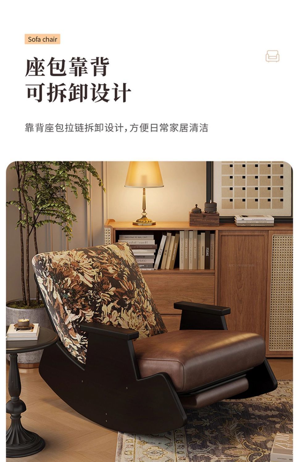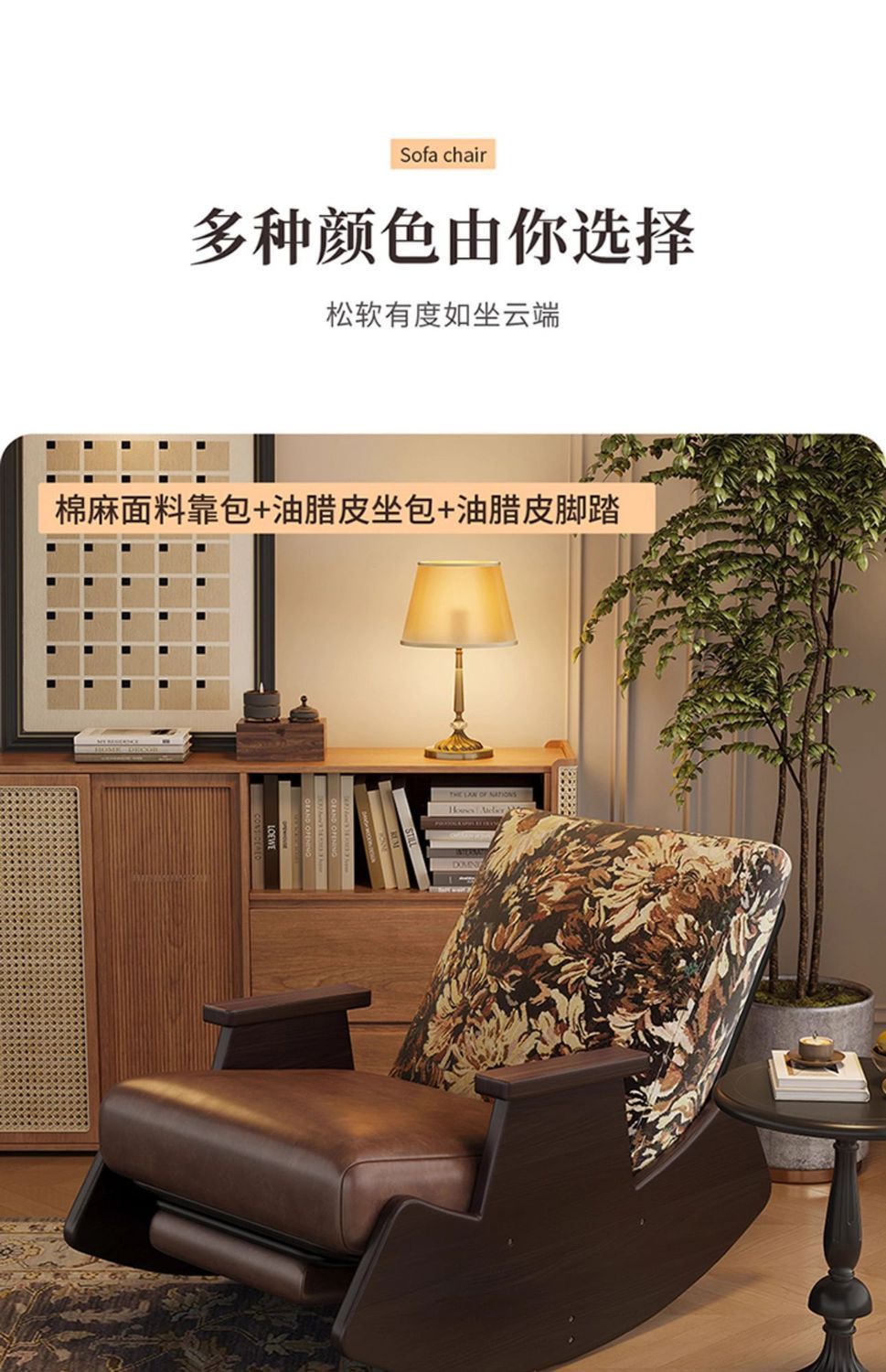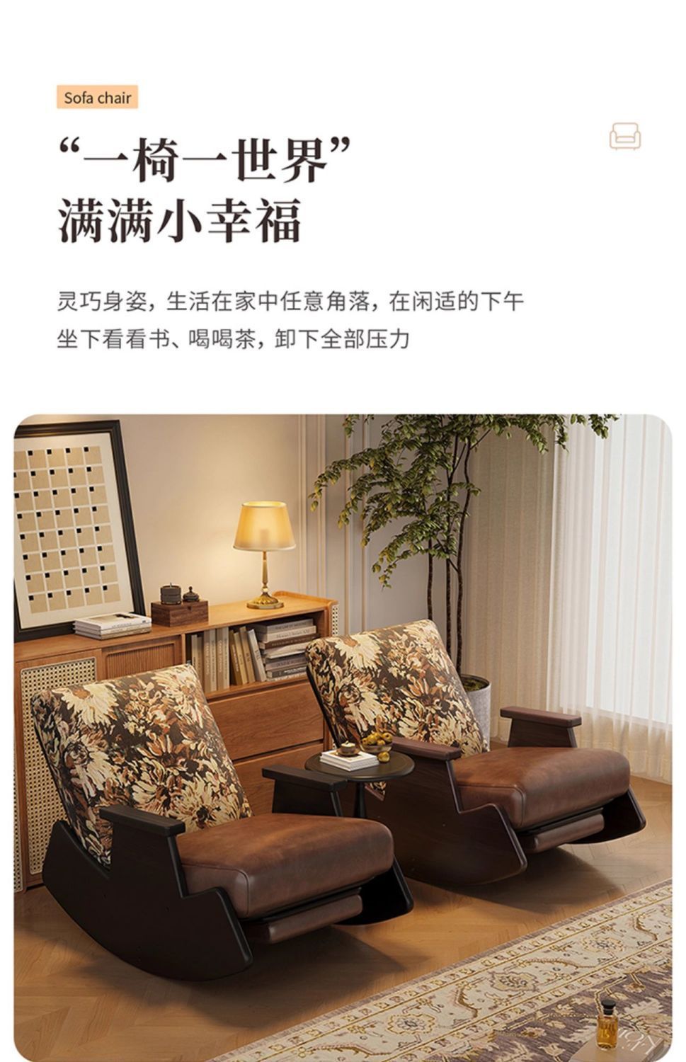 中古风单人实木摇摇椅可躺午睡椅阳台家用休闲椅客厅卧室懒人沙发