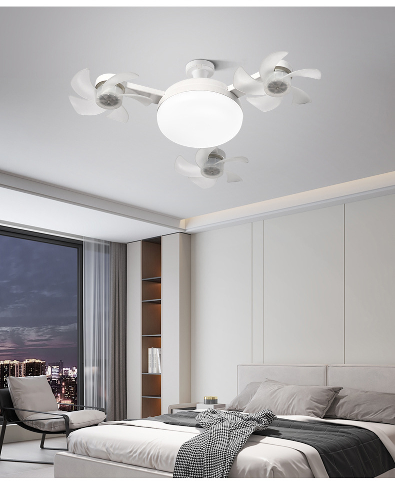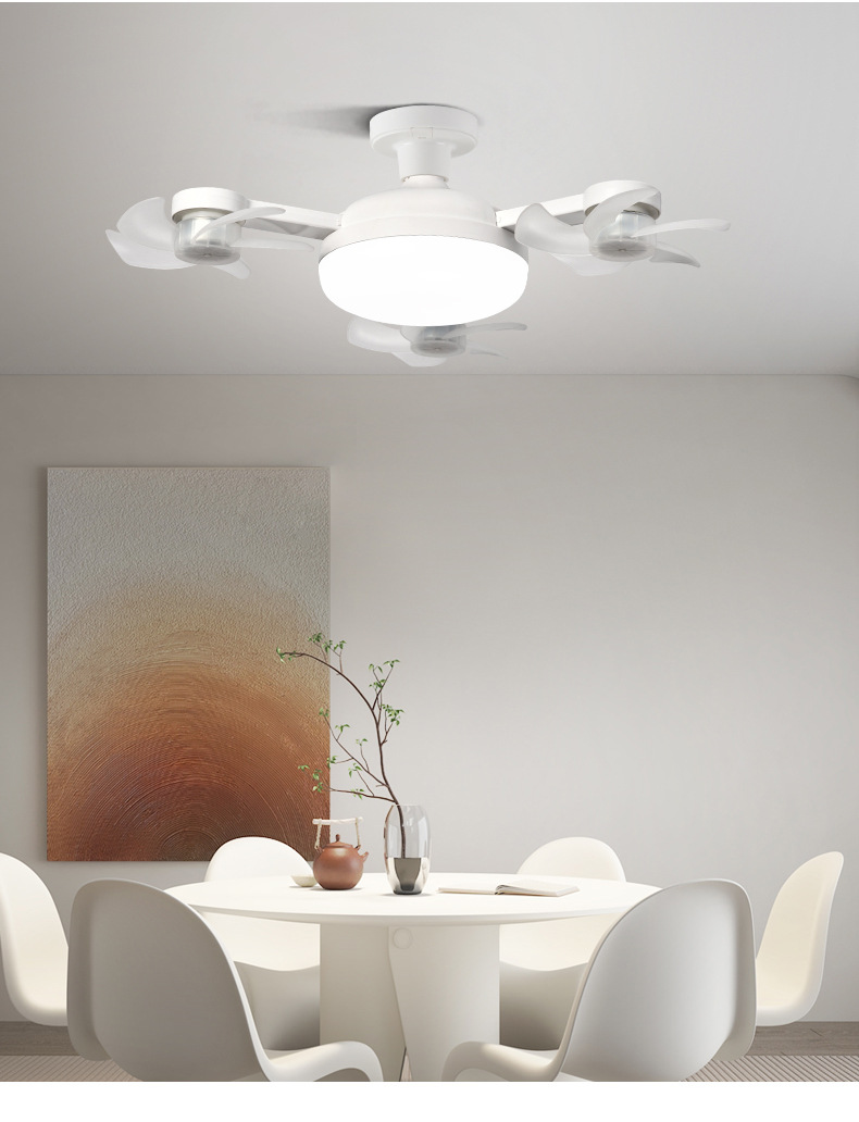 クロスボーダーLEDクリエイティブE27ドローンファンライトリビングルーム寝室静音調光一体吸上扇風機シャンデリア