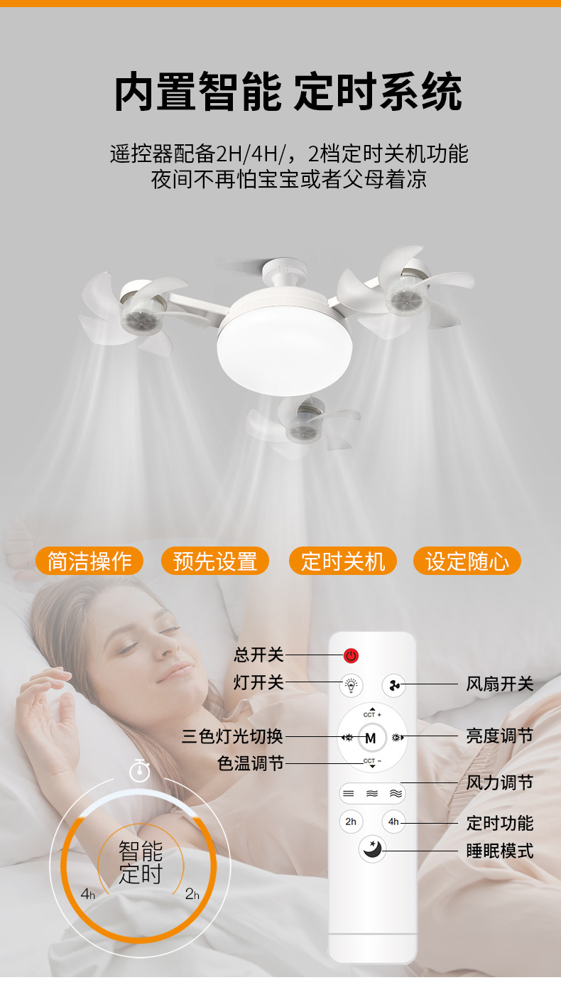 新型国境を越えた無人機ファンランプ寝室レストラン寮家庭用小型E27ねじ口天井ファンランプ