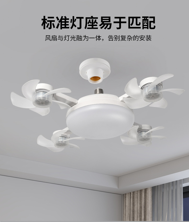 新型リモコン静音家庭用大風力E27ねじ口ファン電球天井ファン電球寝室レストランled電球