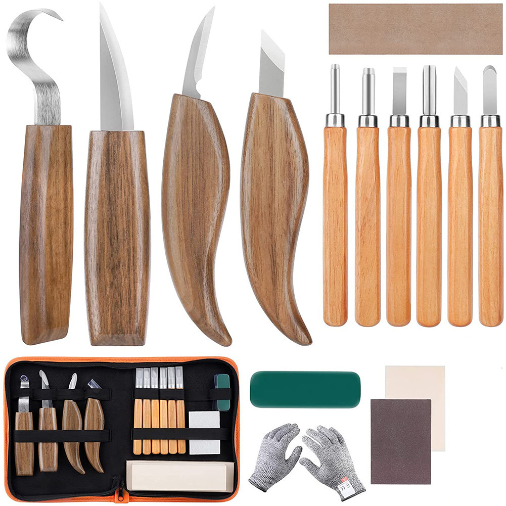 胡桃の木の彫刻刀のキャンバスの袋の包装の16セットのメーカーは手作業の彫刻刀の工具の彫刻刀の木工を供給します。