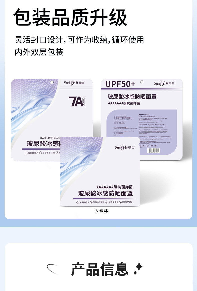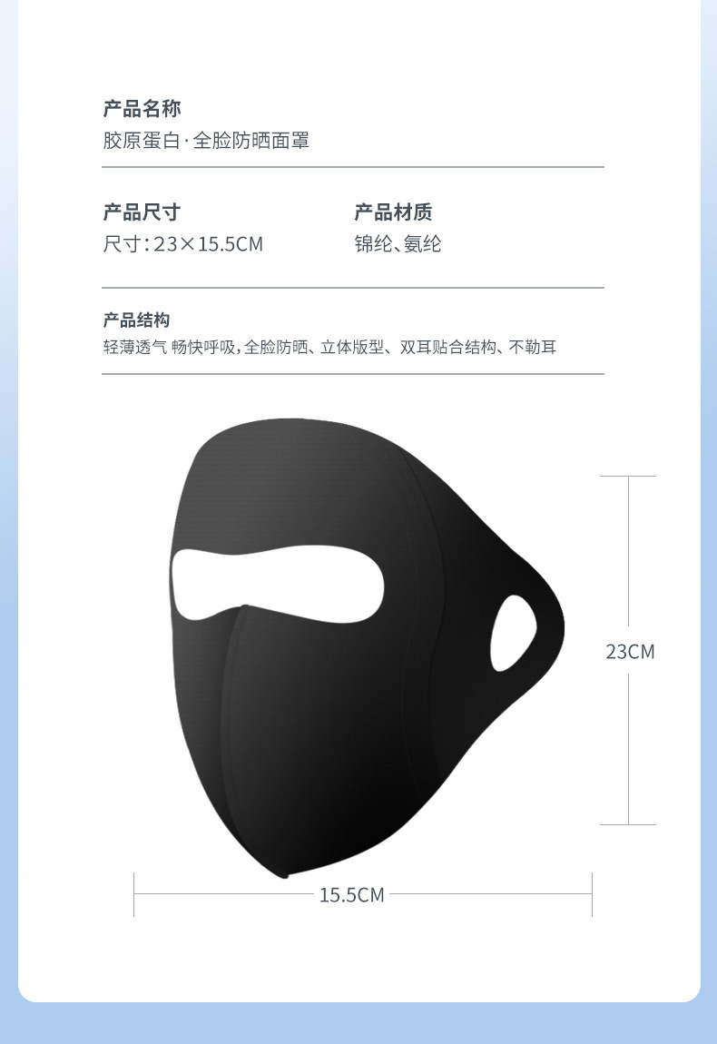 舒美佳日焼け止めマスク全顔紫外線防止UPF50通気性皮膚日焼け止めマスクコラーゲン7a面