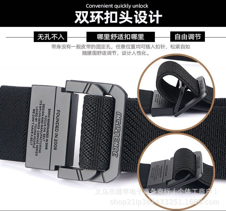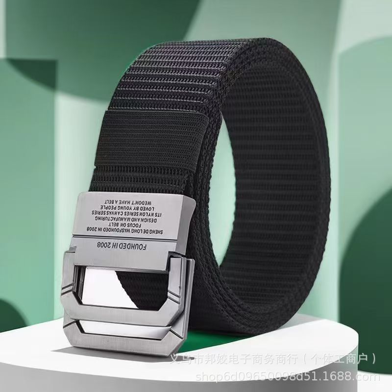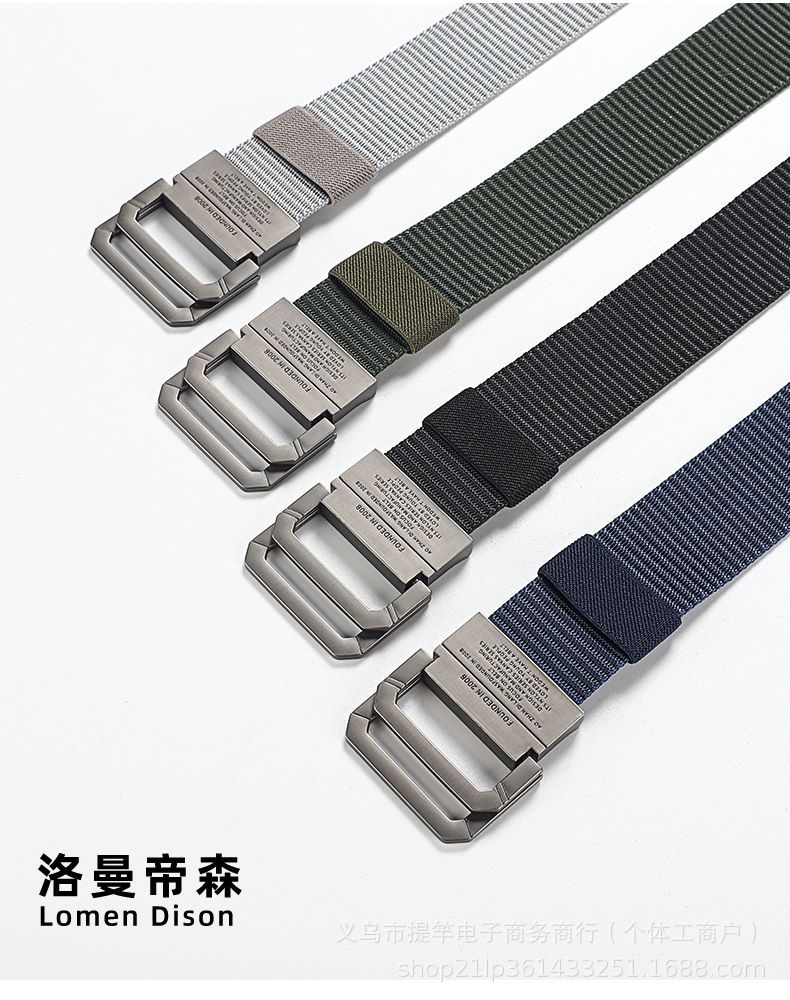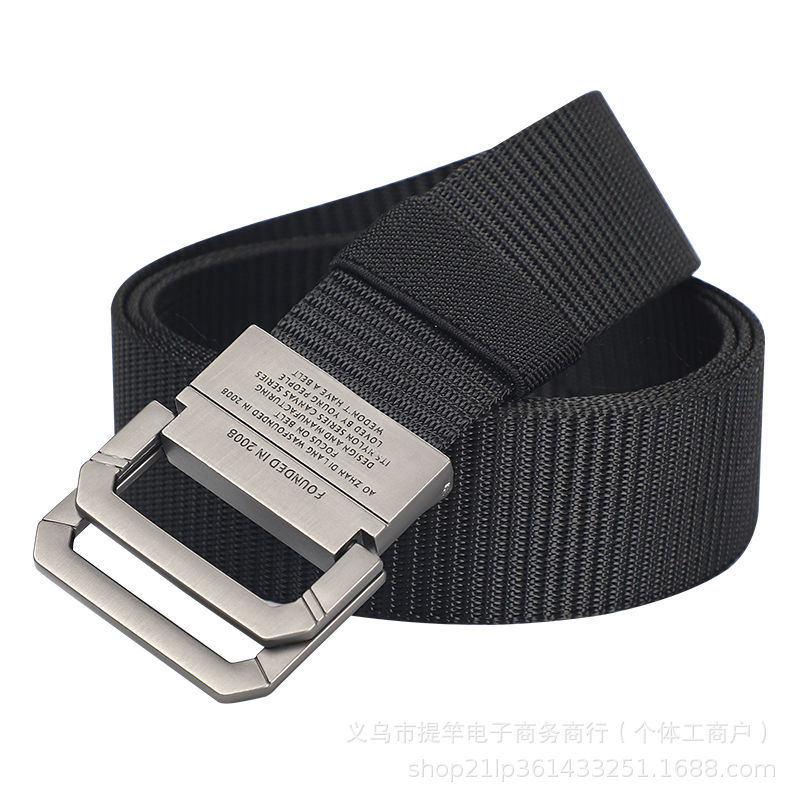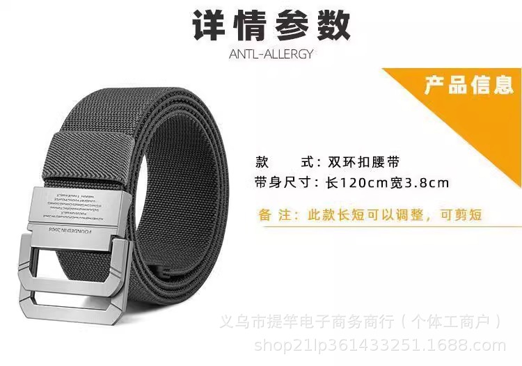 ダブルリングバックルナイロンベルト 3.8cm合金バックル メンズ 韓国風 キャンバス織り ジーンズベルト 卸売販売