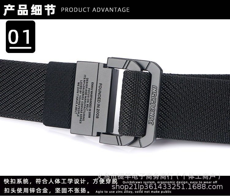 メンズ戦術バックルナイロンズックベルト合金自動レジャー工装アウトドア弾力ベルト軍事訓練ズボンベルト