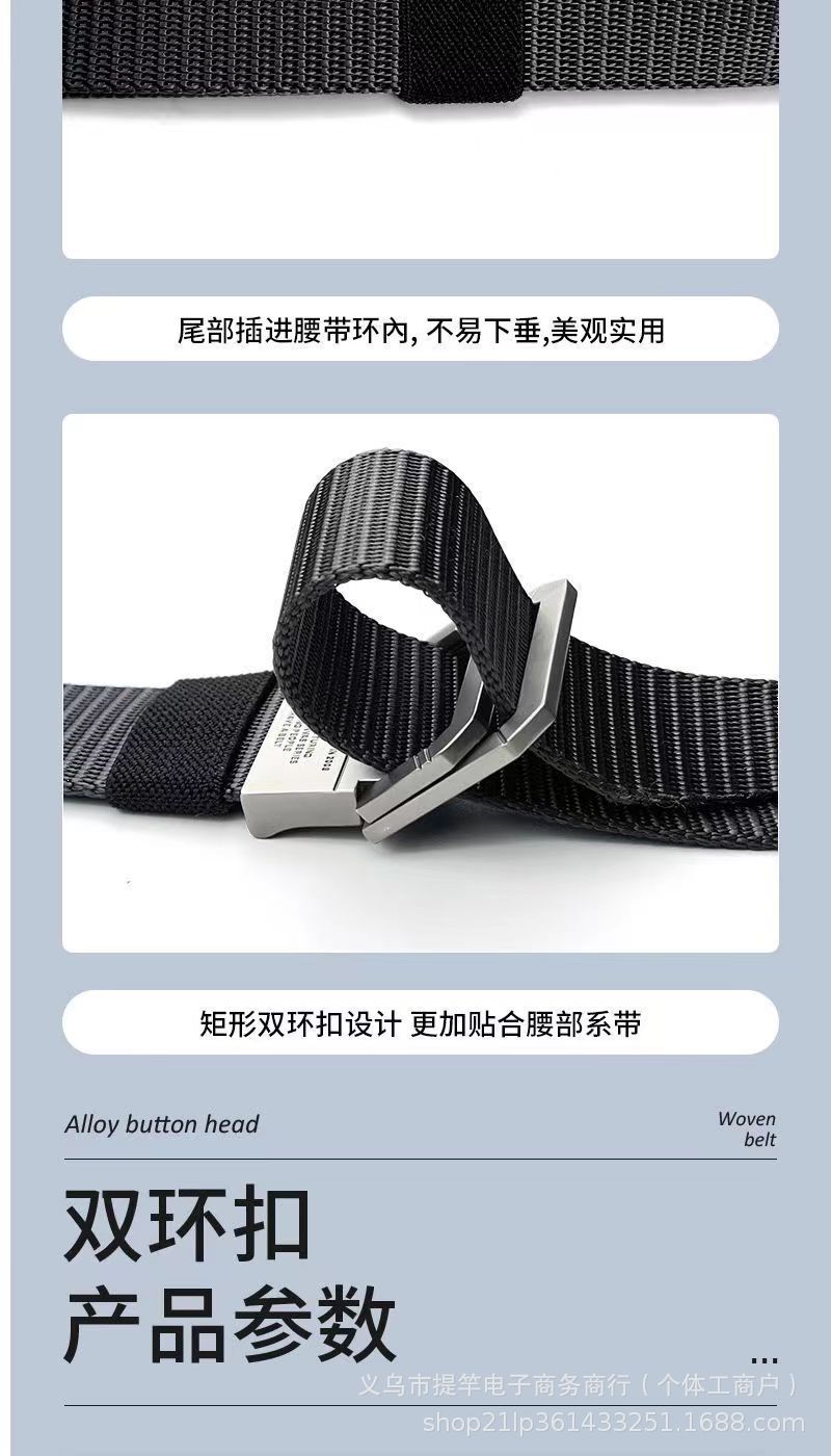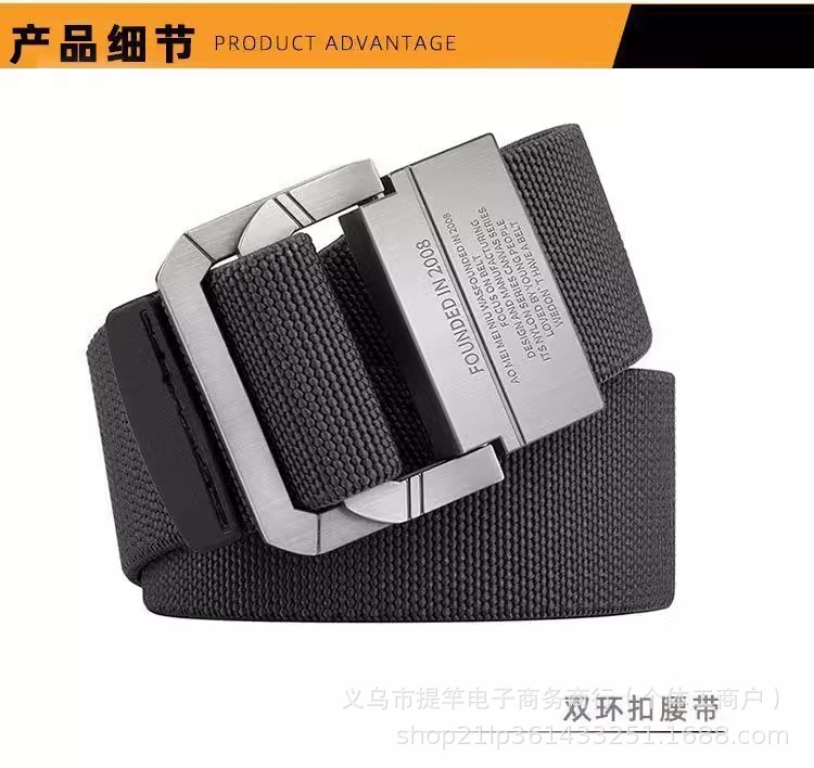 男性カジュアルズックベルトダブルリング金属バックルベルト青年工装軍事訓練ジーンズベルト現物代発