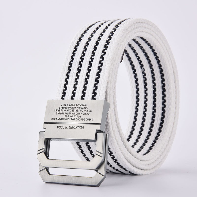 現物卸売りズックベルト男性ダブルリングバックルベルト青少年学生軍事訓練ファッション延長カジュアルズボンベルト