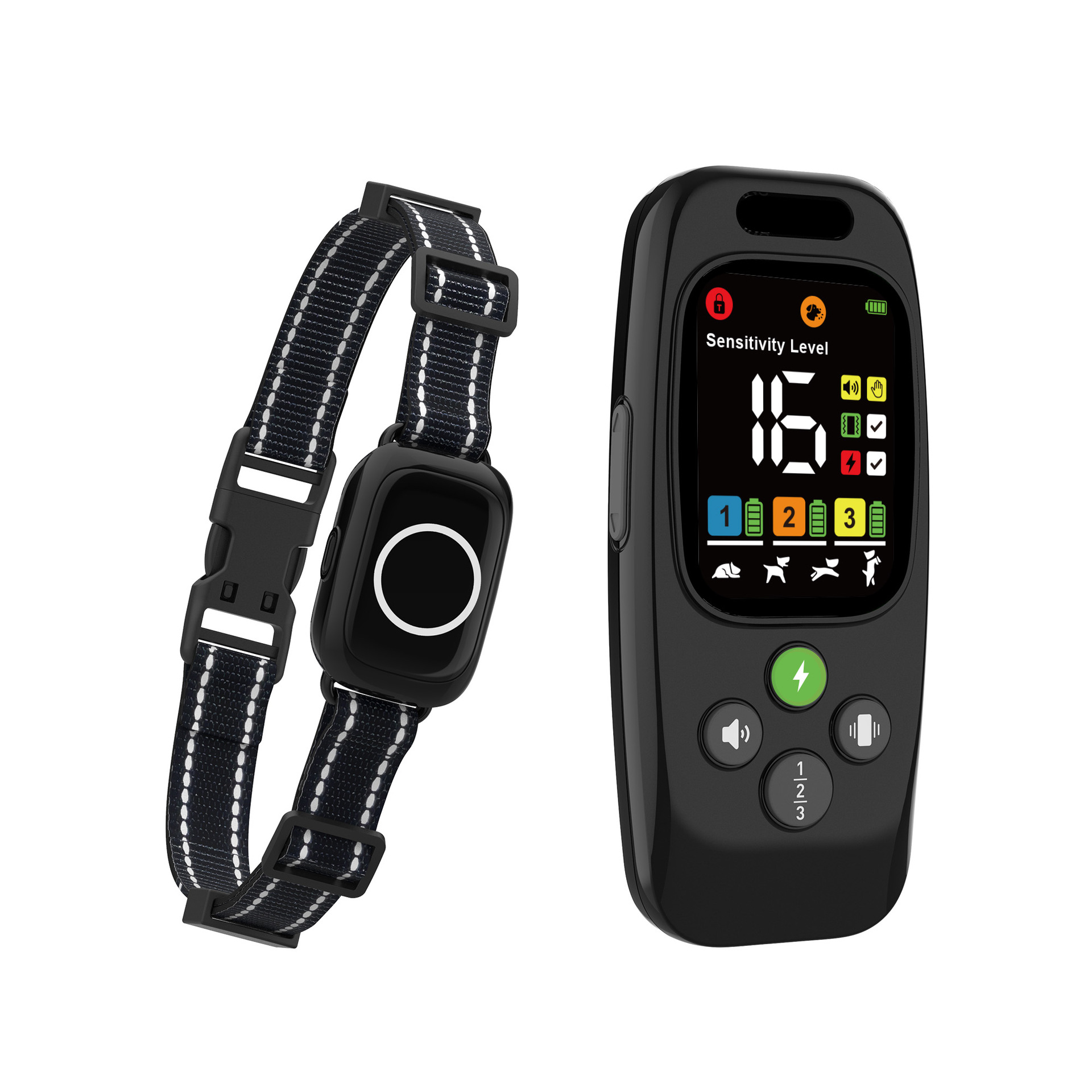 1、本产品结合了训狗器止吠器+狗狗状态的显示,运用双相通可以在遥控直接看到狗狗的一个运动状态。