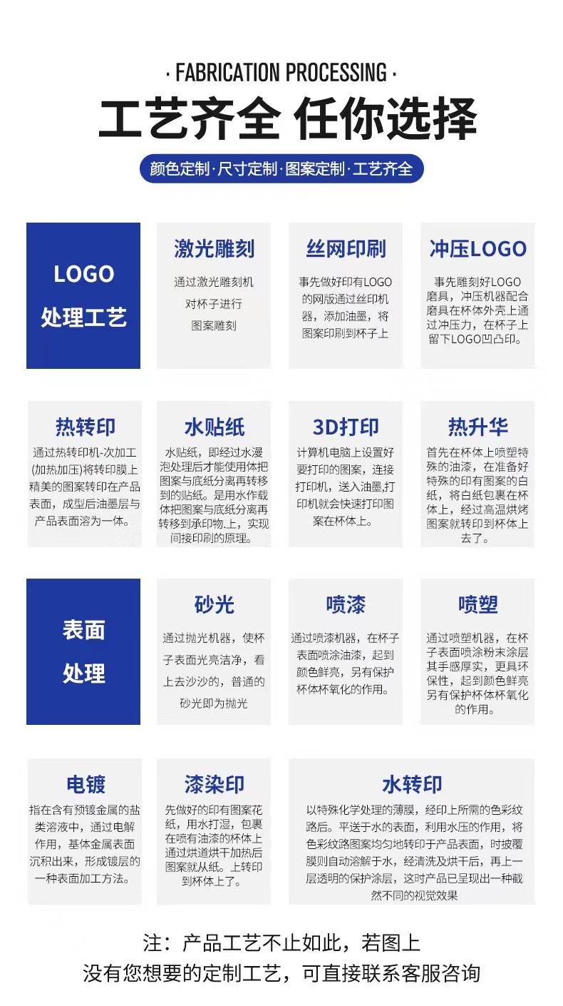 定制工艺选择 热转印,激光雕刻,丝印,水转印,水贴膜,3D打印,5d打印,漆转印,内喷陶瓷