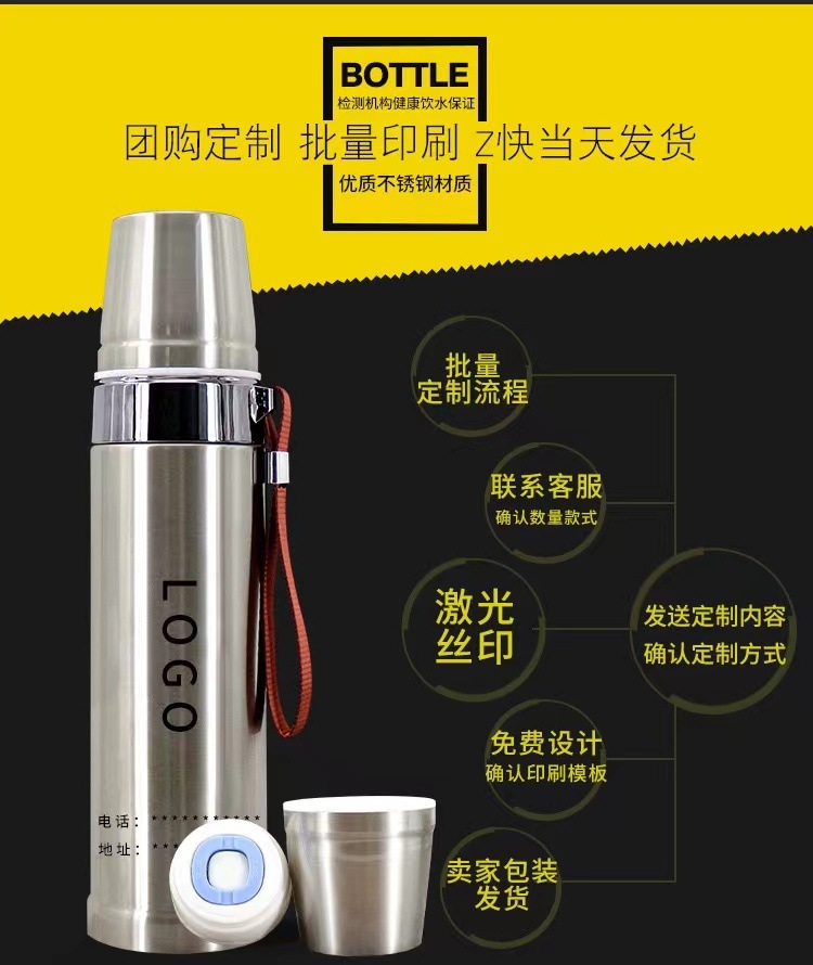 750ml鉄甲弾頭真空保温カップ大容量携帯屋外水筒プレゼント印刷ロゴ