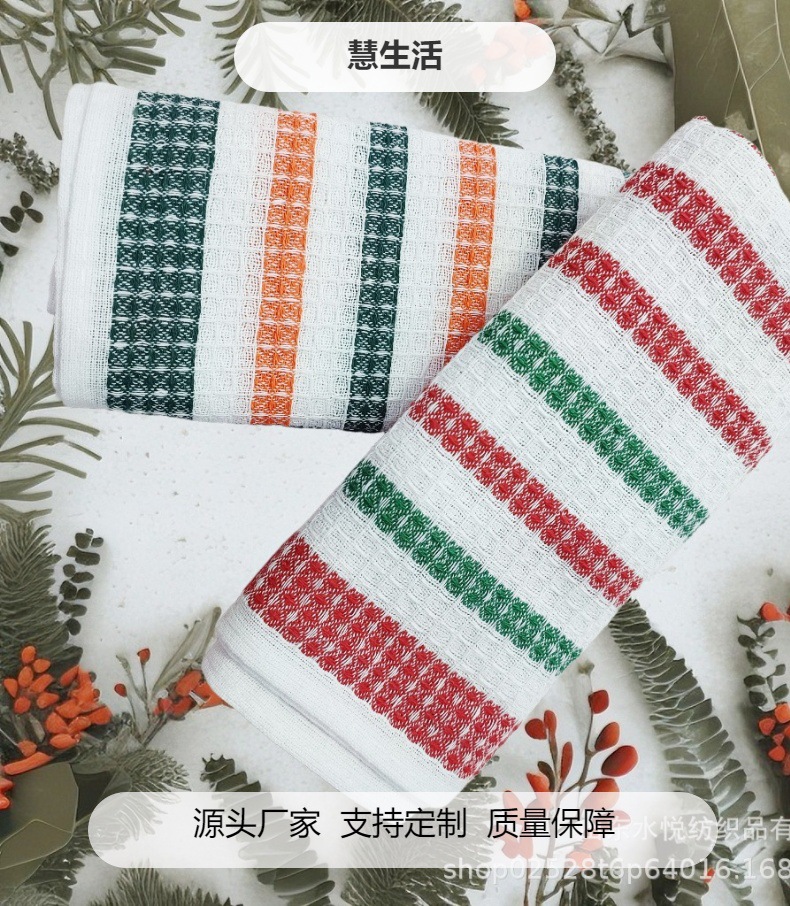 スポットポリエステル綿ストライプハイエンドティータオルキッチンタオル強度工場テーブルクロスディッシュタオルマルチカラーオプションの特別なティータオル