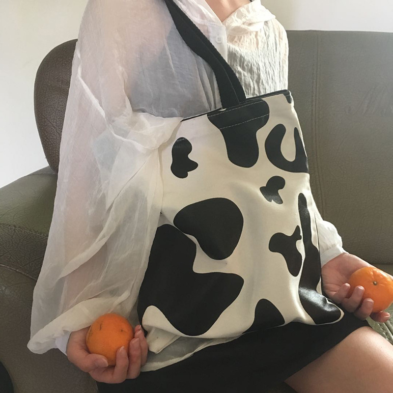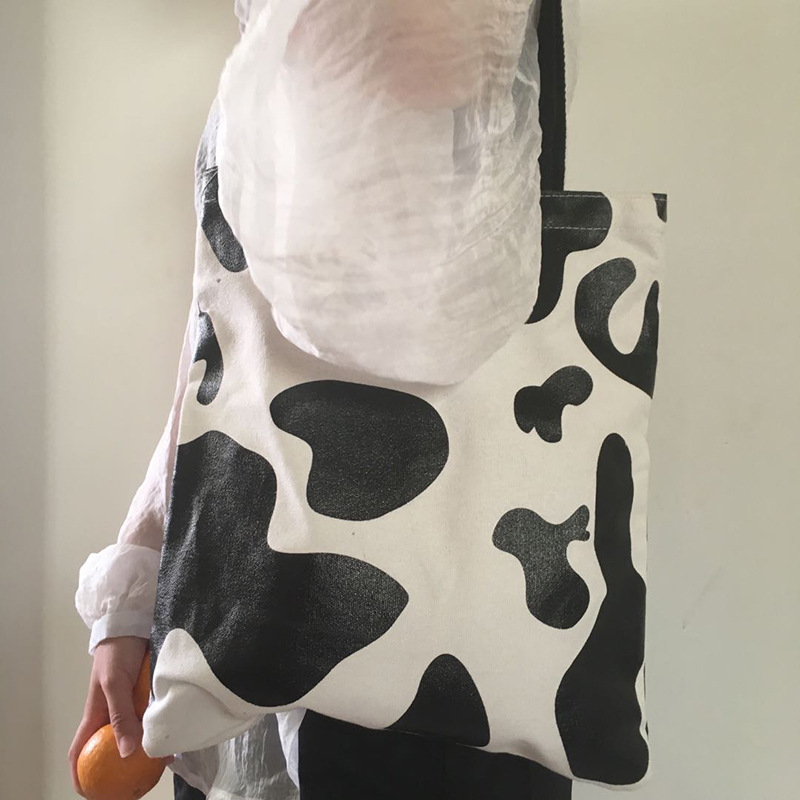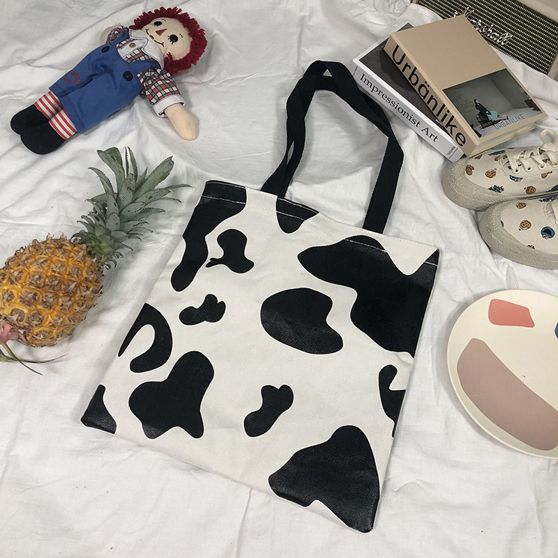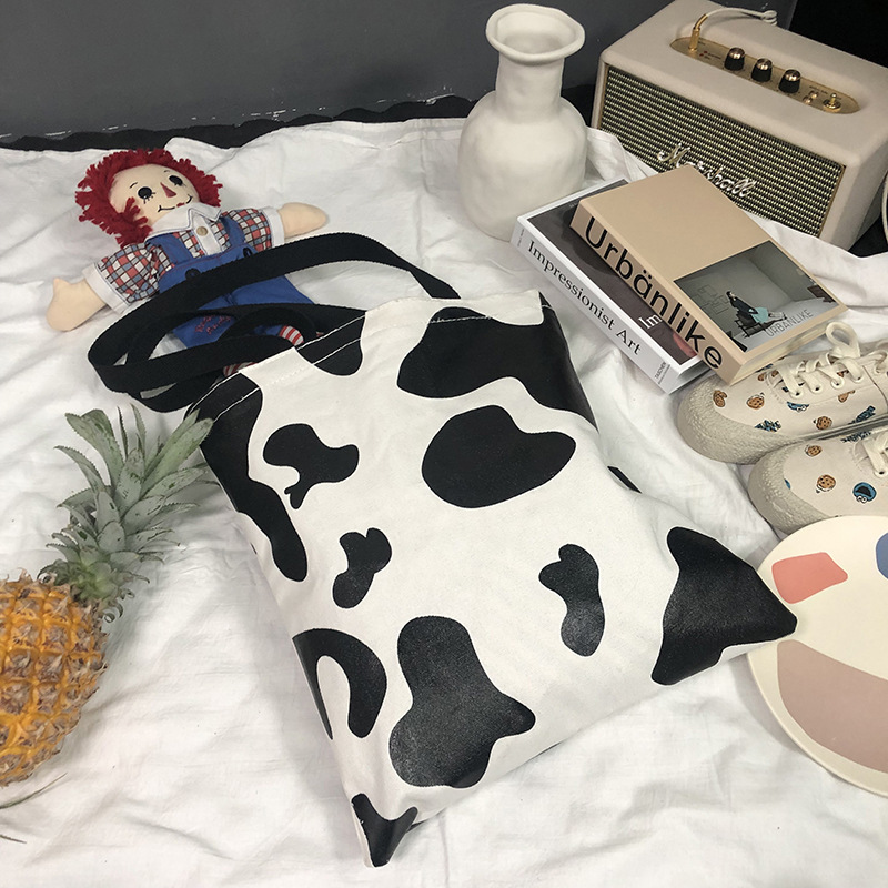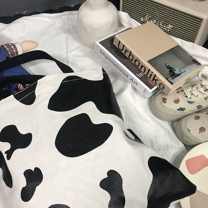 日本のかわいい牛ポータブルキャンバスバッグシンプルで多用途の文学インショルダーバッグ女性のシックな学生ショッピングバッグ