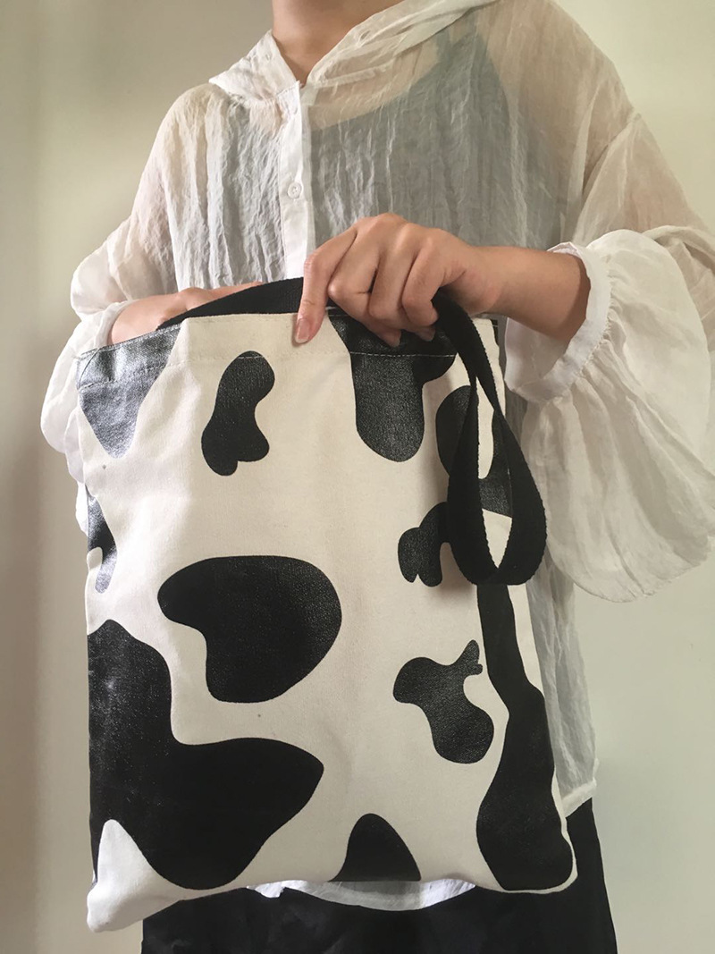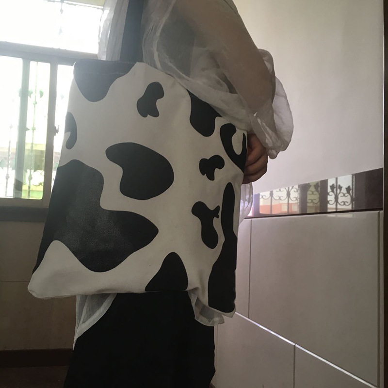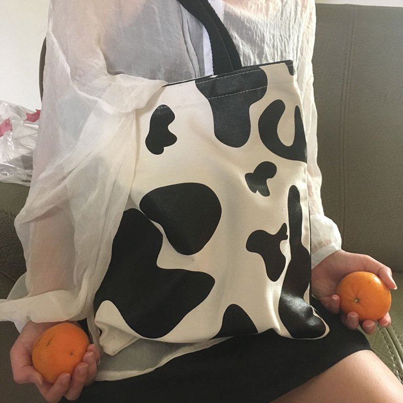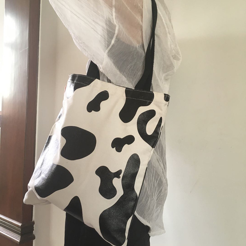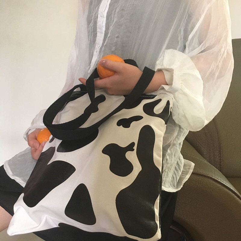 日本のかわいい牛ポータブルキャンバスバッグシンプルで多用途の文学インショルダーバッグ女性のシックな学生ショッピングバッグ
