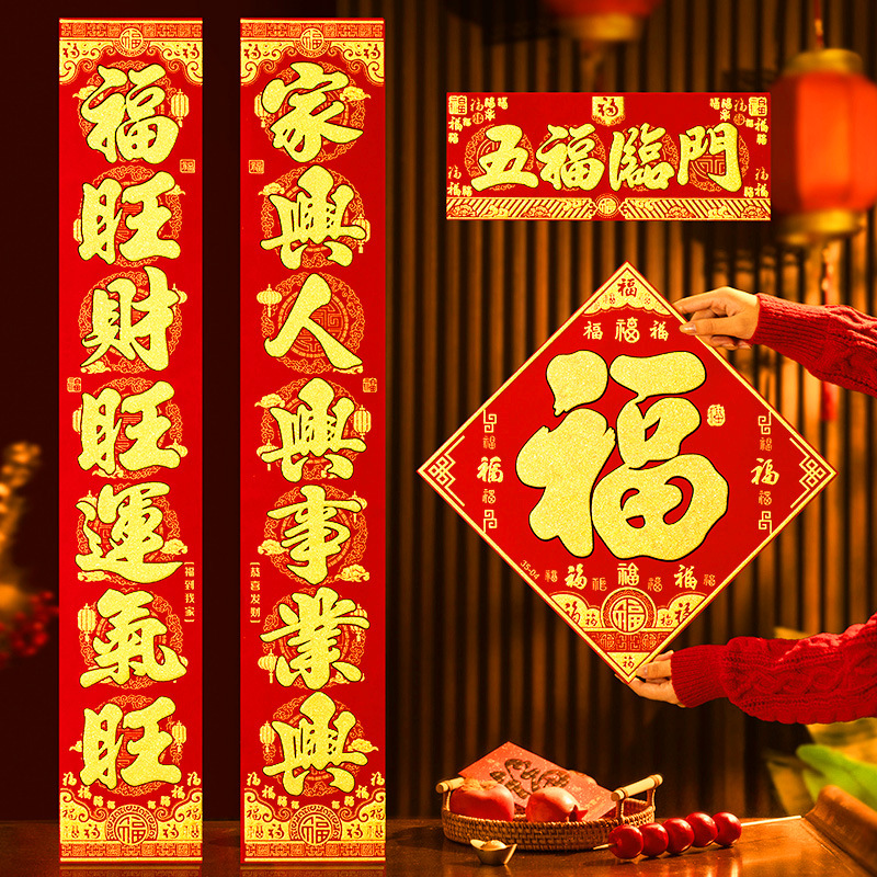 高級家庭用2026年新作馬年春節対聯、新年福文字入り春節玄関飾り用品
