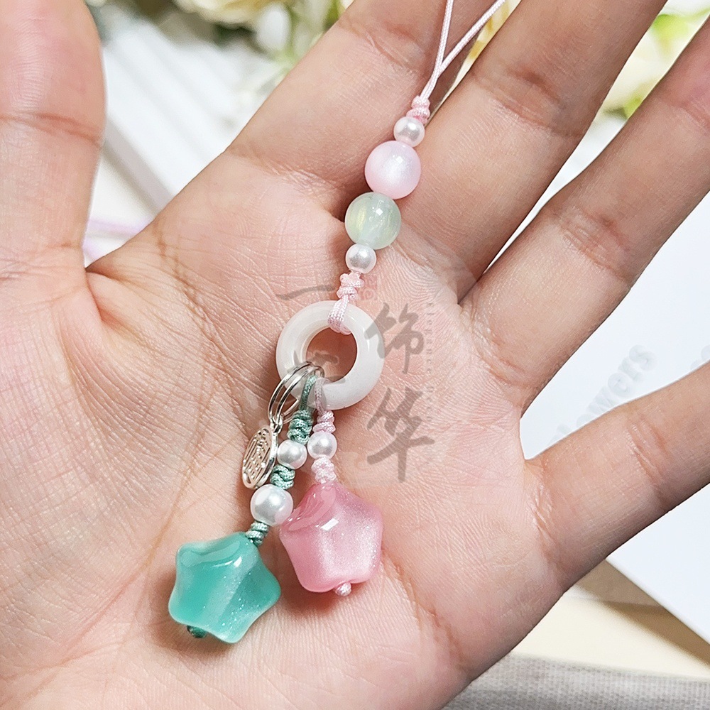 カラーかわいい植毛五角星散珠diy携帯チェーンのキーホルダー