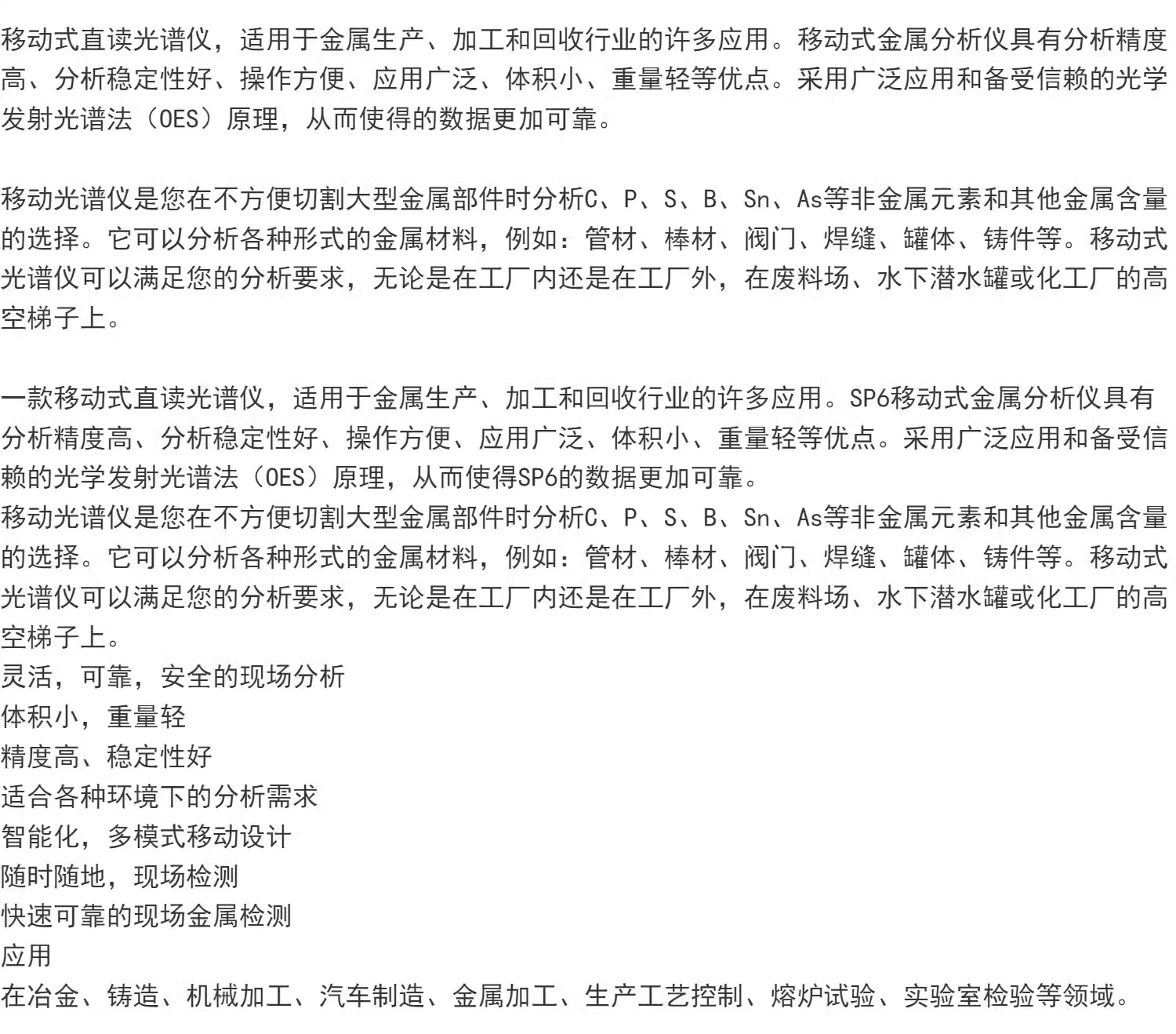 ポータブル金属分析装置 モバイルスパーク直読分光計 ハンドヘルド分光計 ハンドヘルドモバイルモデル