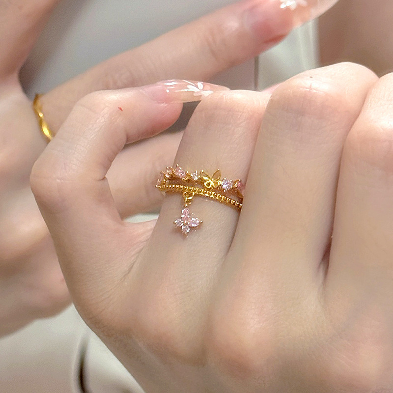 小紅の本の爆発金は4月の春の跡の蝶の仙子のフリンジリングの震え音の新型の優しさとロマンチックな高級感の指輪です。