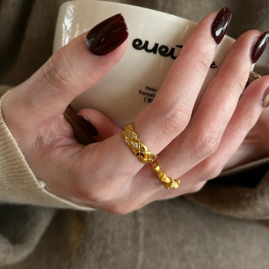 Xiaohongshu 人気の中古プレーンゴールドドットダイヤモンドリング女性用キューバシングルダイヤモンド人差し指リング女性用幾何学リングドロップシッピング
