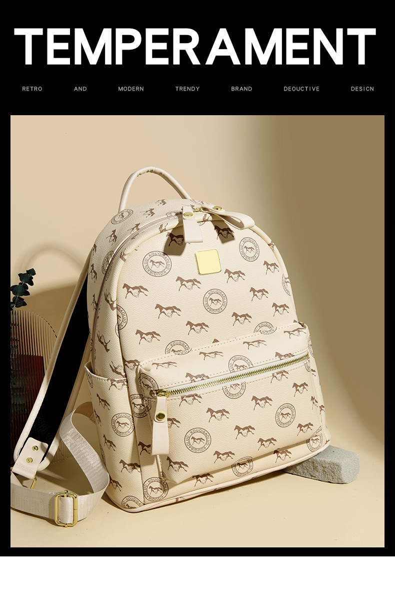 双肩包女2025新款韩版复古印花背包休闲大容量时尚旅行书包女包潮