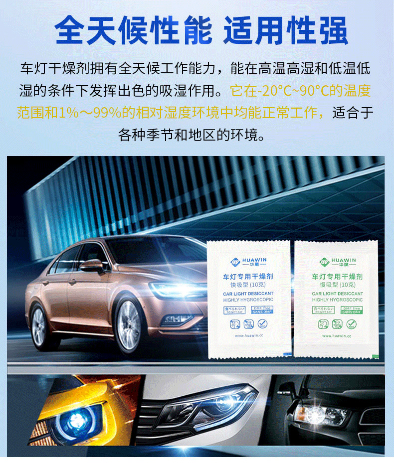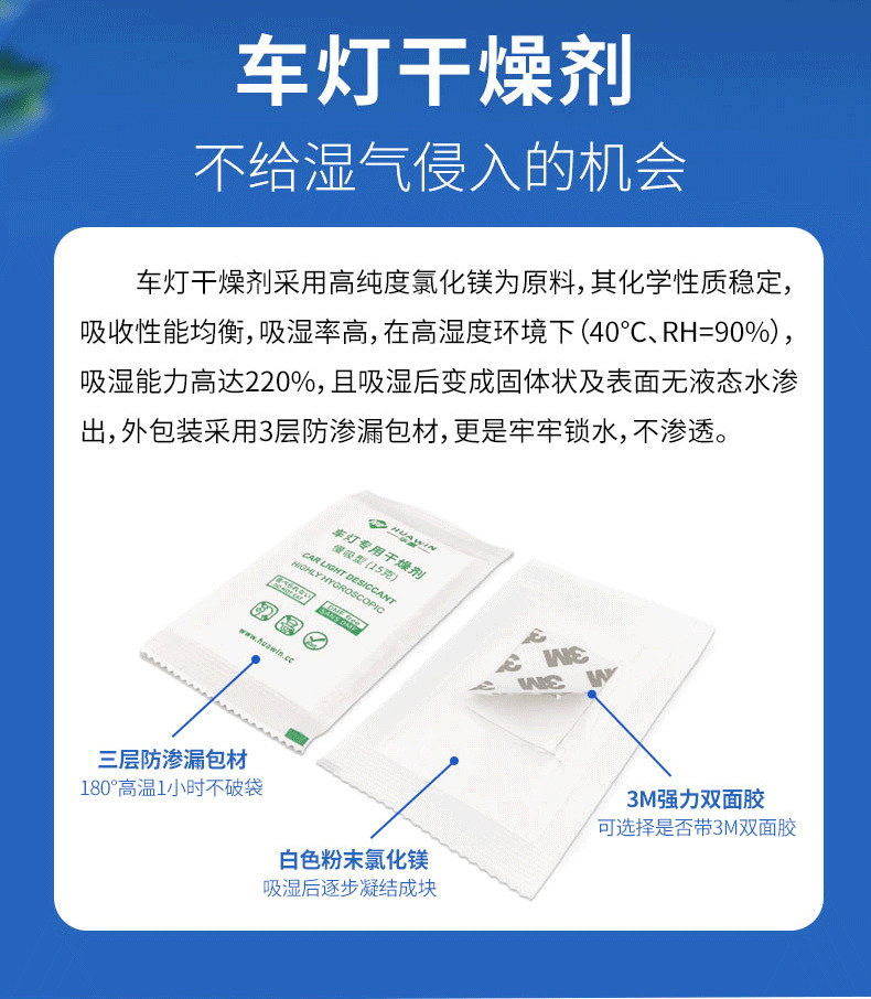 日常使用の塩化マグネシウム乾燥剤車のライト防湿吸湿剤 5 グラム乾燥剤車のヘッドライト特殊防湿袋 OEM
