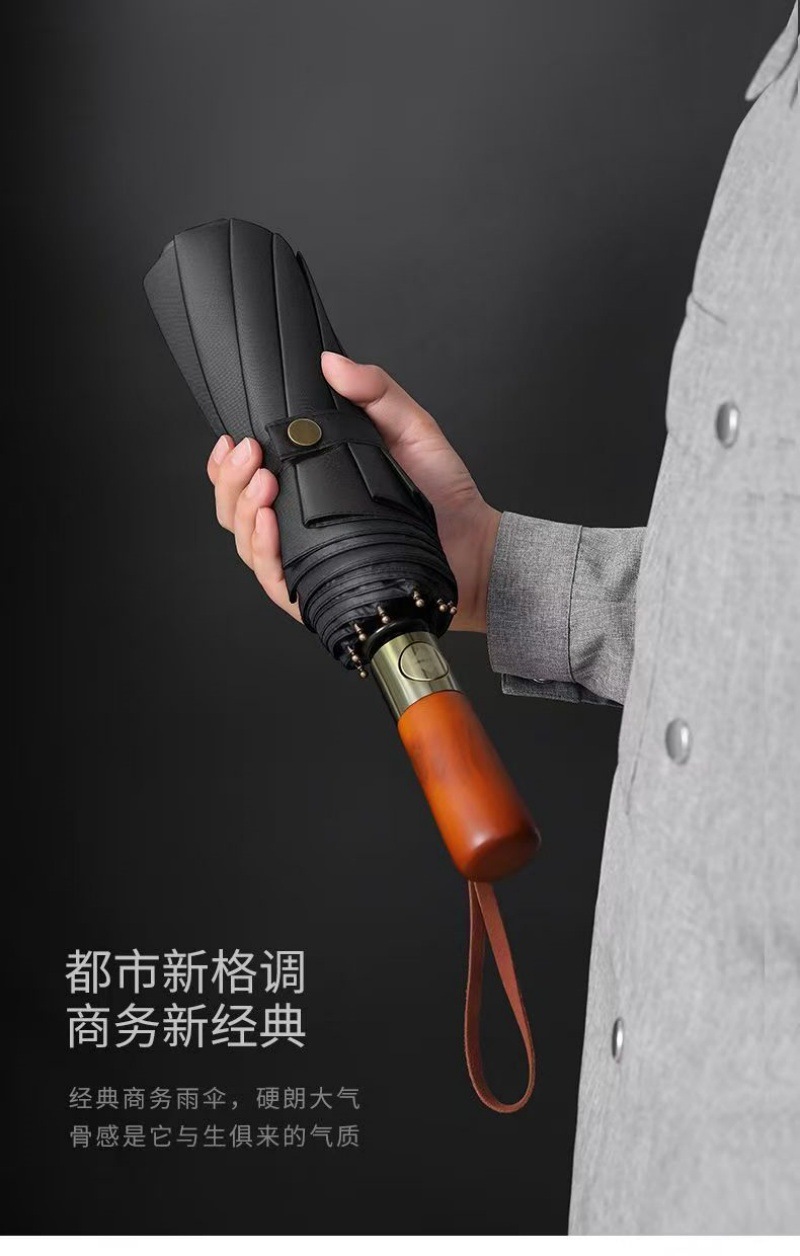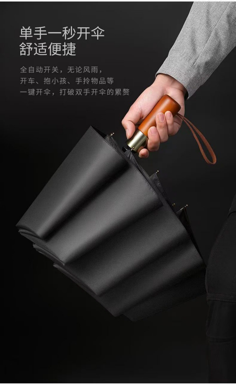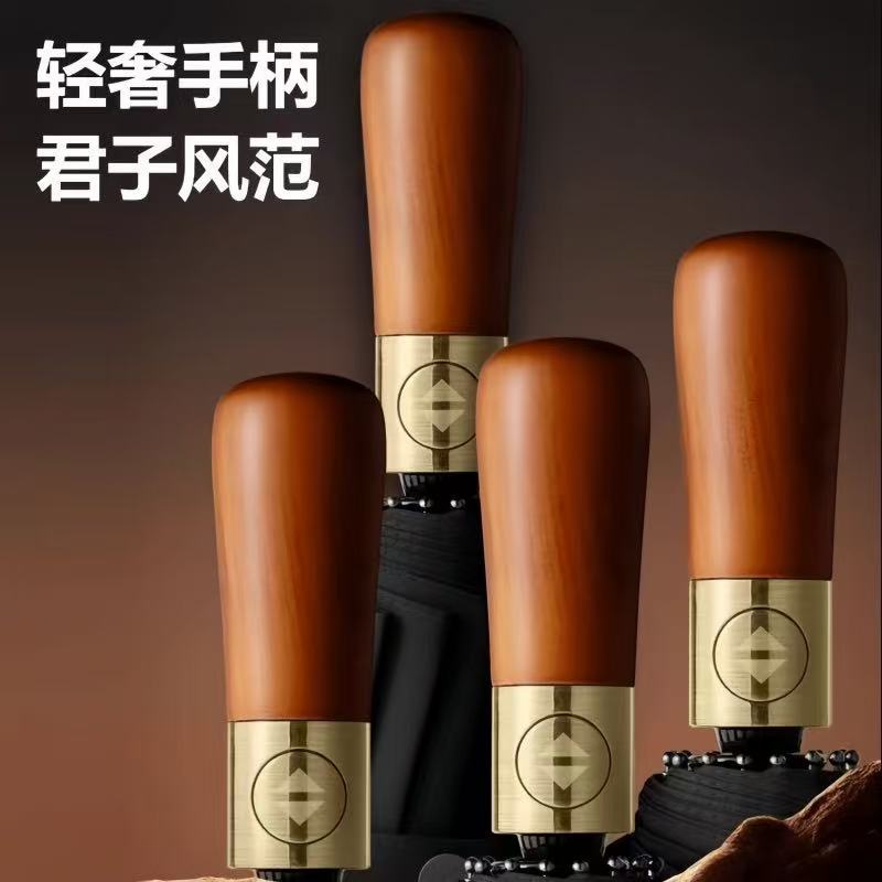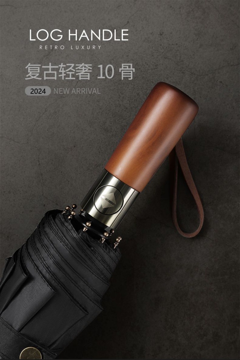 新しい10本骨全自動ハイエンドログハンドル日焼け止め傘メンズハイエンドビジネス折りたたみ傘はロゴを印刷できます