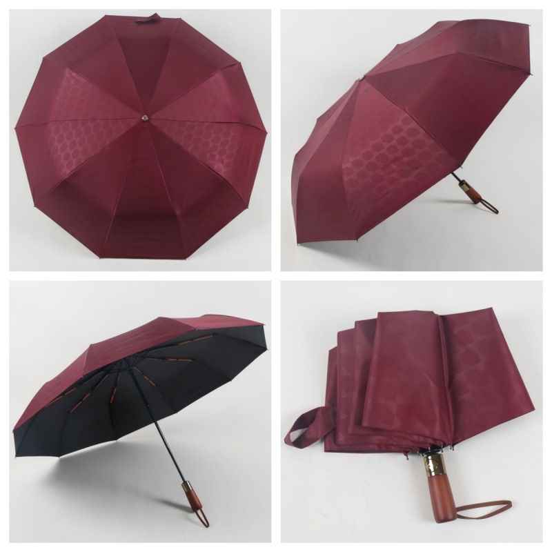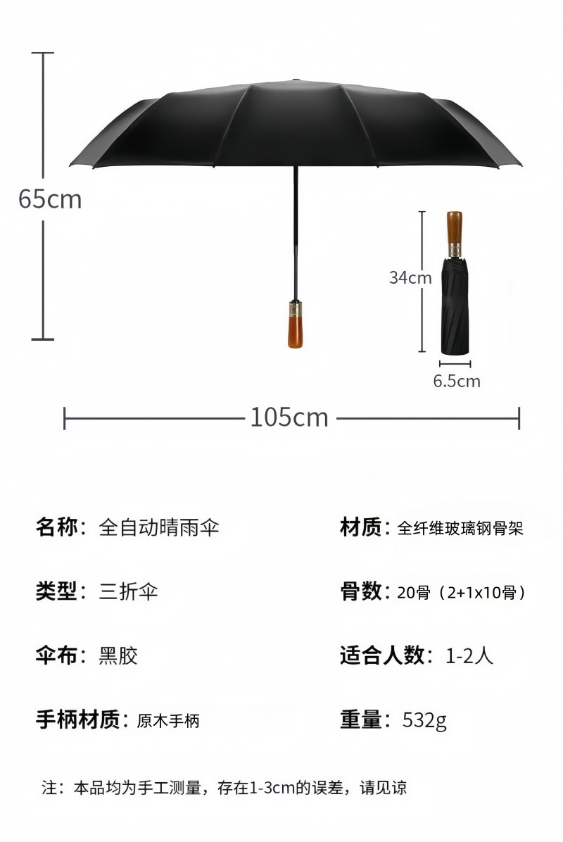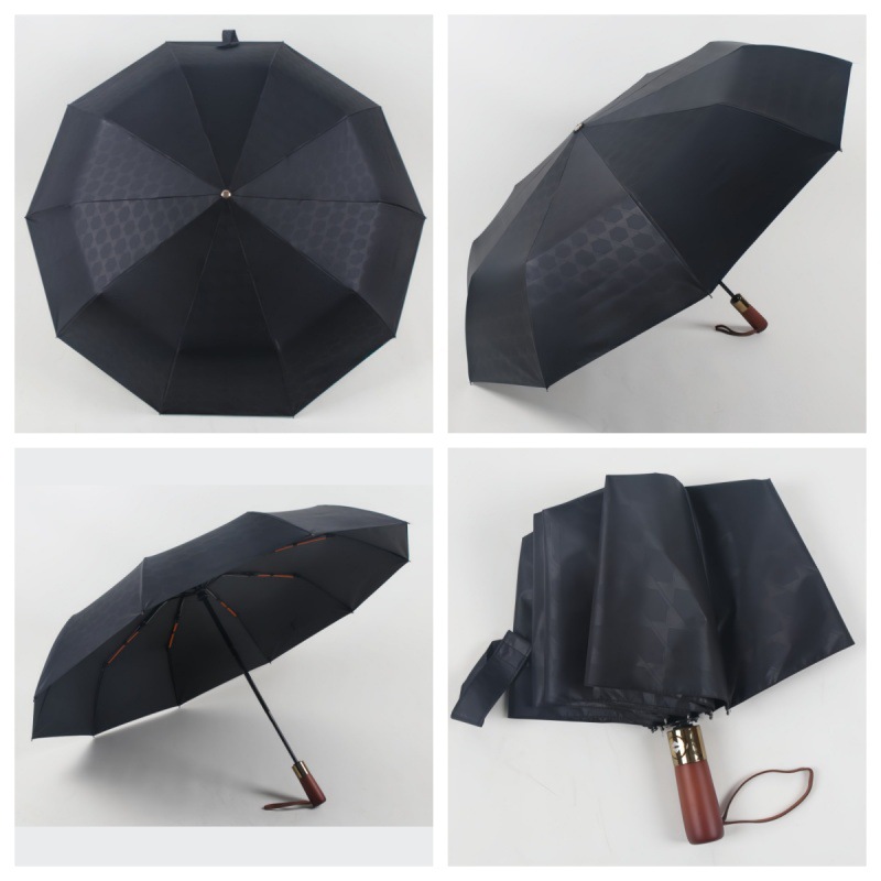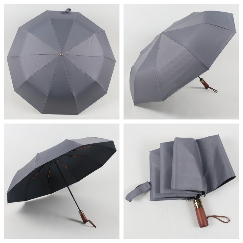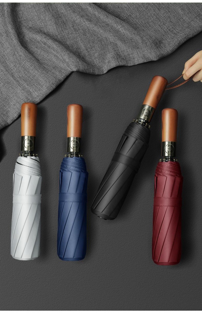 新しい10本骨全自動ハイエンドログハンドル日焼け止め傘メンズハイエンドビジネス折りたたみ傘はロゴを印刷できます