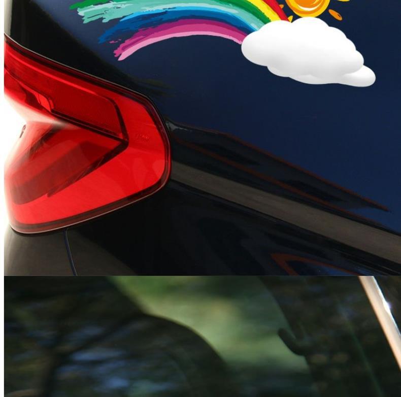 ぼんやりと萌えて穴が開いています。白い猫の車体の風防飾りは傷を遮ります。可愛い電気自動車に車のシールを貼ります。