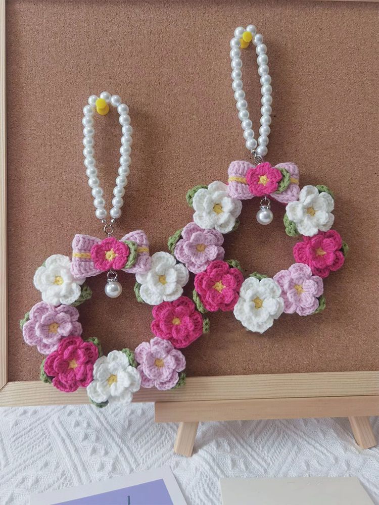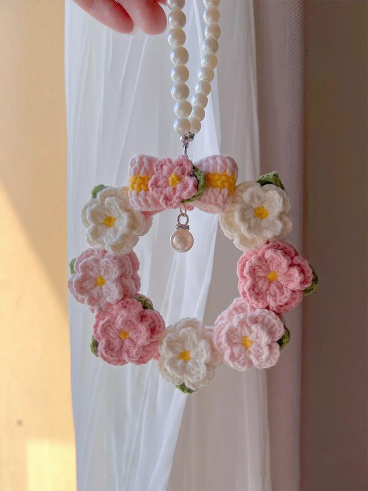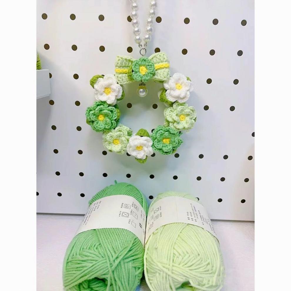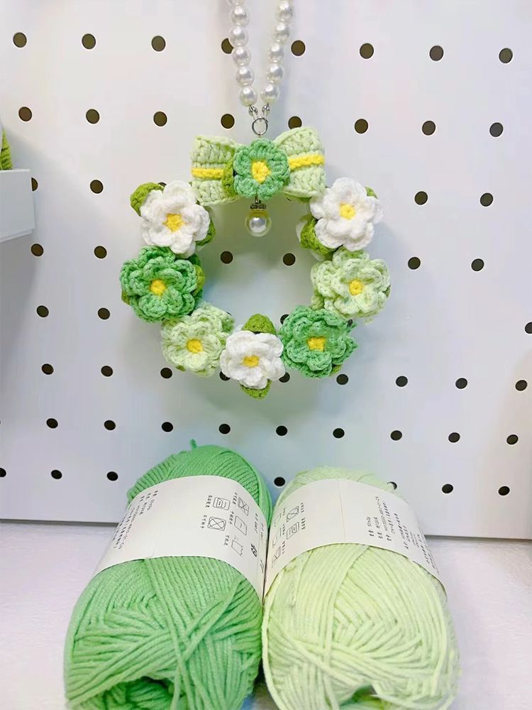 春日花环车挂 编织diy材料包毛线钩织花朵挂件钥匙扣自制闺蜜女友