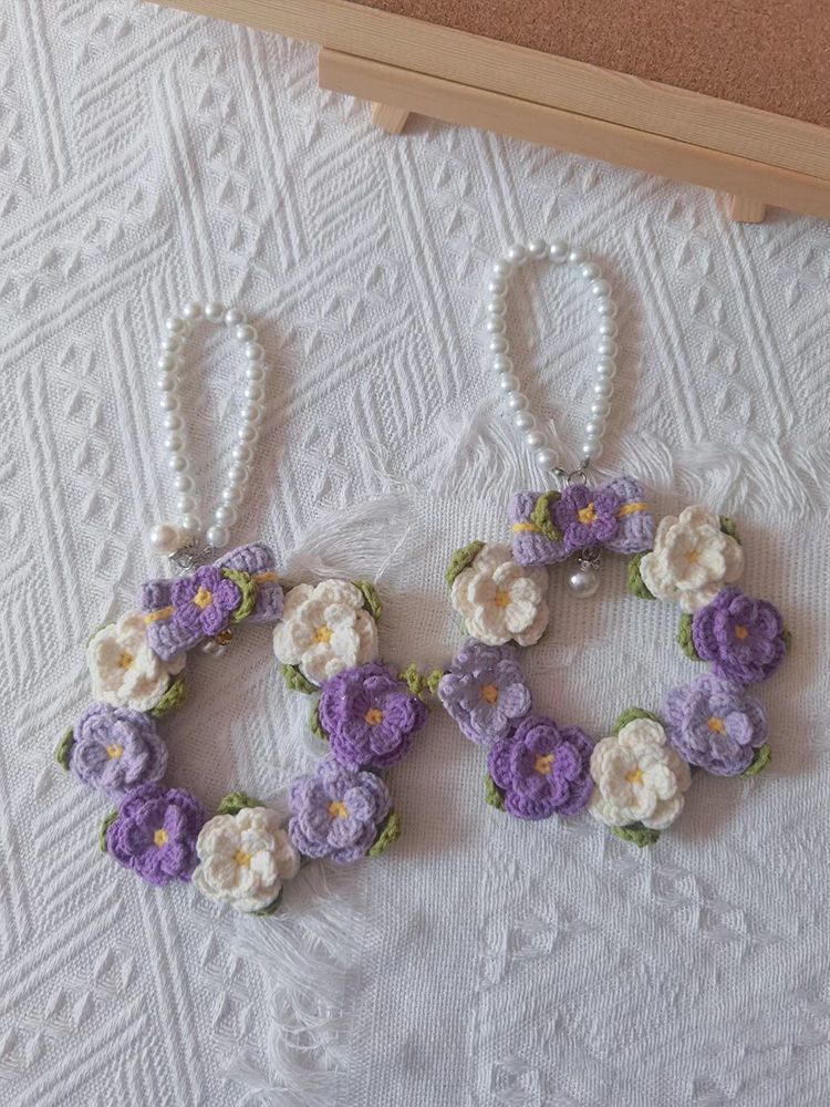 完成品手作りかぎ針編み春花輪毛糸かぎ針編み毛糸花輪編み車掛花輪キーホルダーアクセサリー
