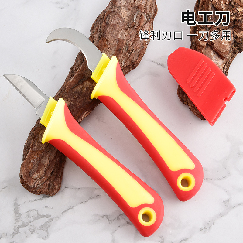 絶縁電気ナイフ曲げ刃直刃プラスチック柄電気ナイフ多機能ケーブル剥離線刀ケーブル切断工具