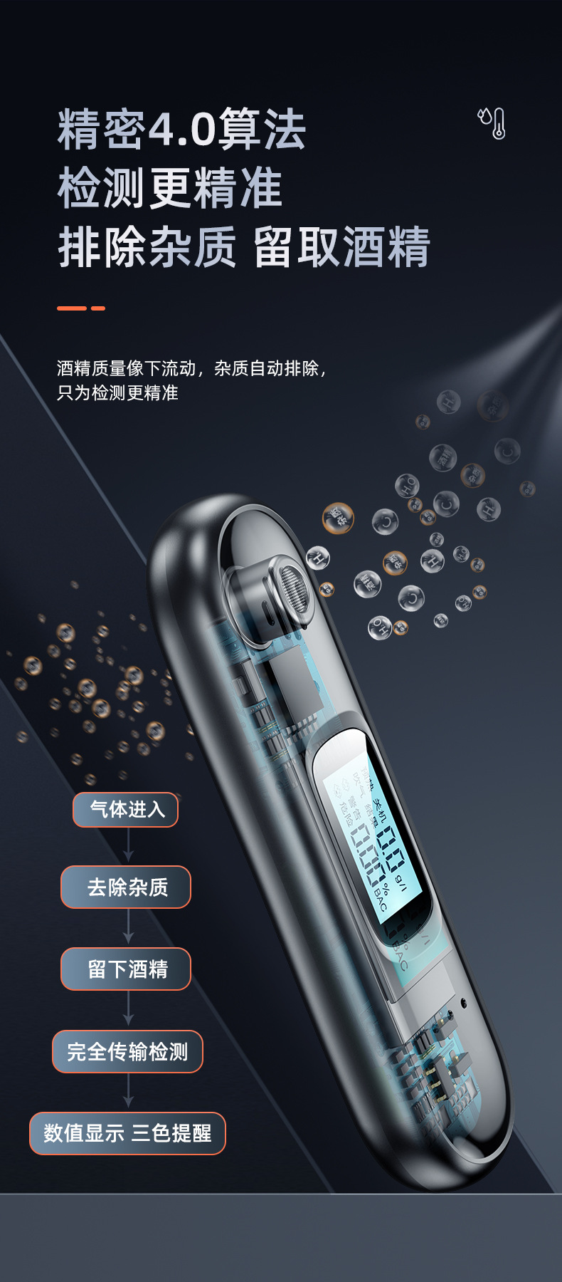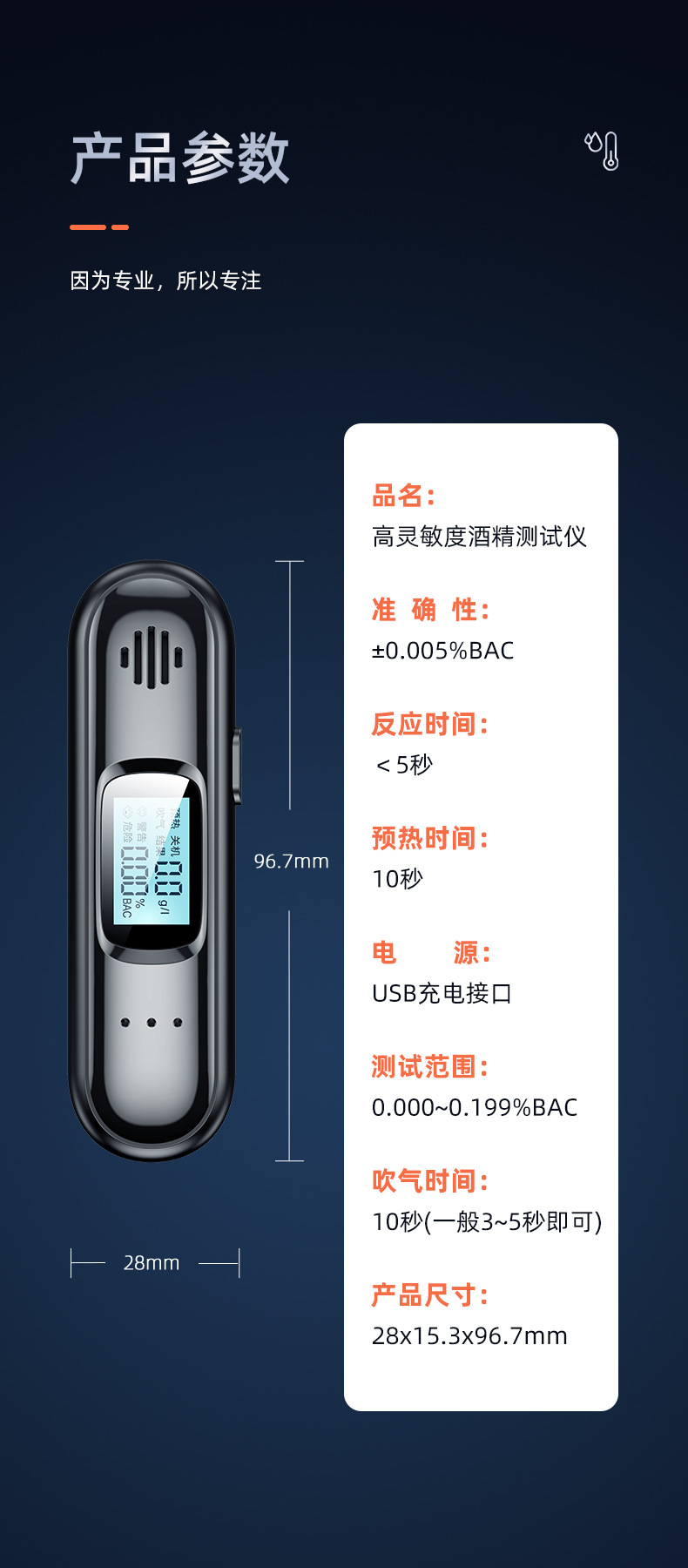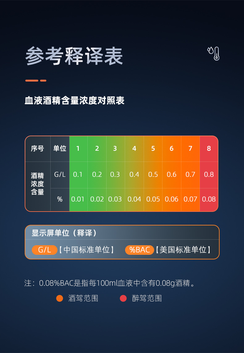 测试范围: 0.00-0.19%BAC(0-1.9g/l)
