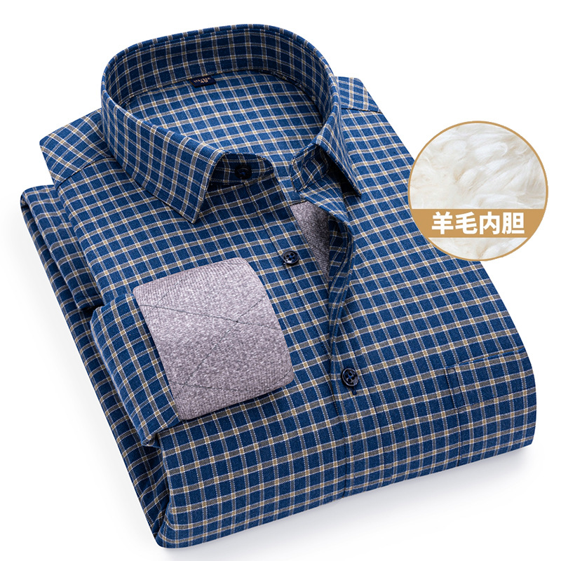 2025秋冬纯棉羊毛加厚格子衬衫男士抗皱保暖衬衣商务休闲衬衣男