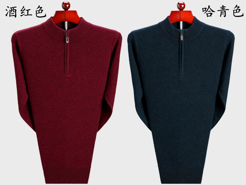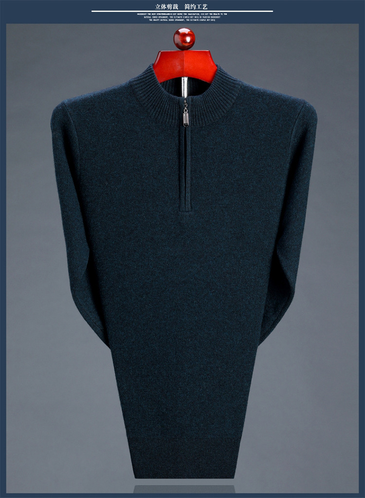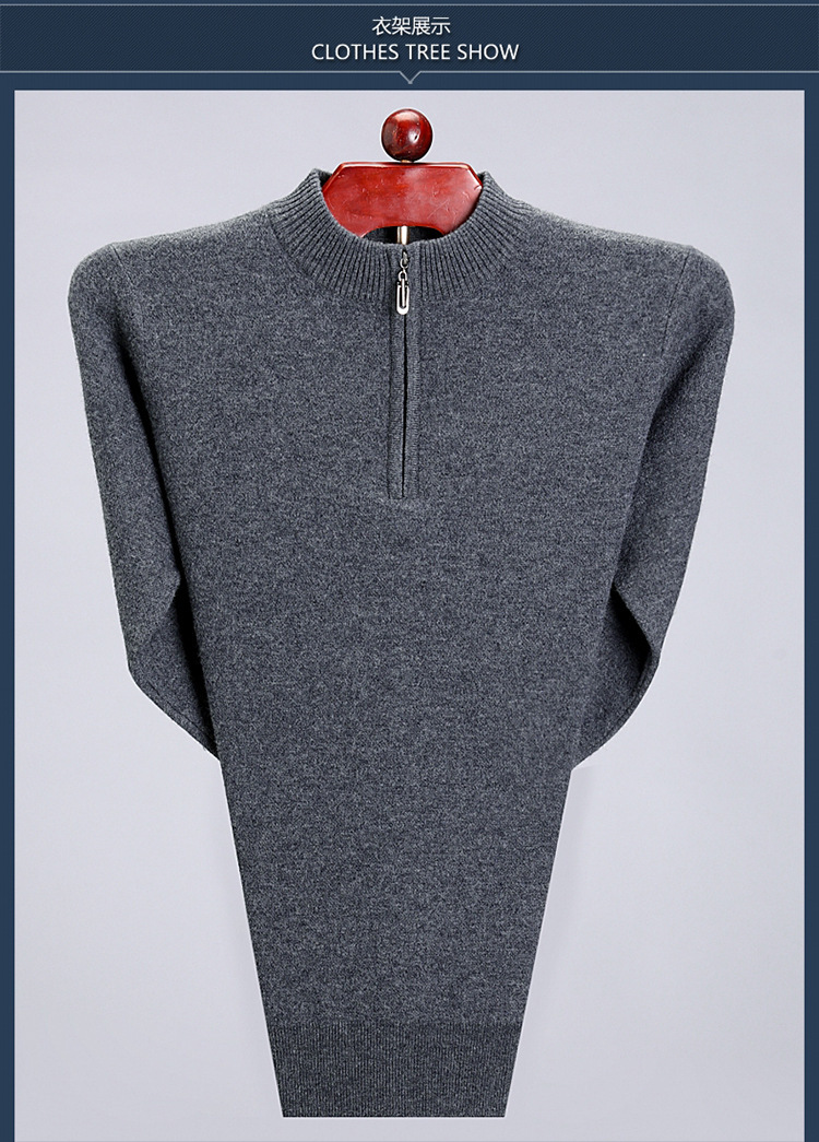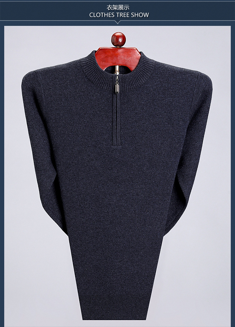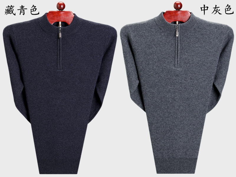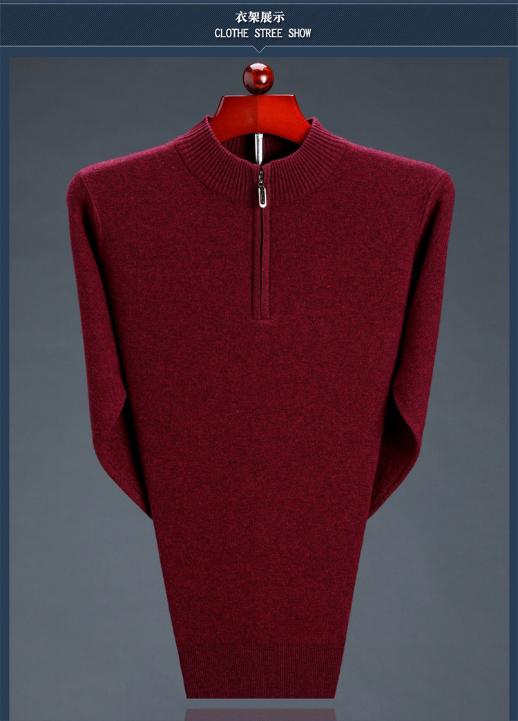 秋冬新款羊绒衫男厚款中老年半高拉链领羊毛衫男士纯色套头毛衣