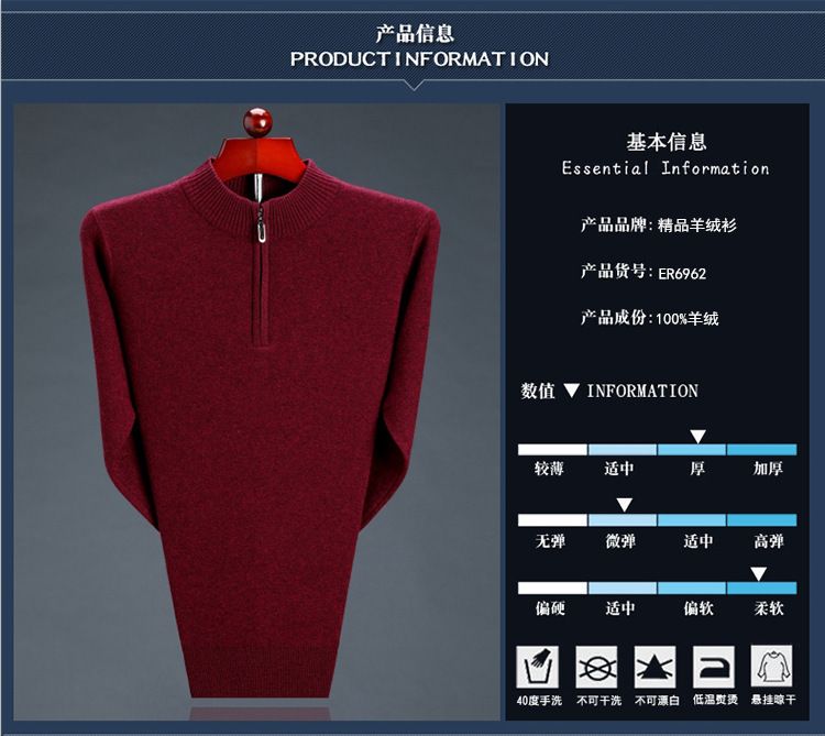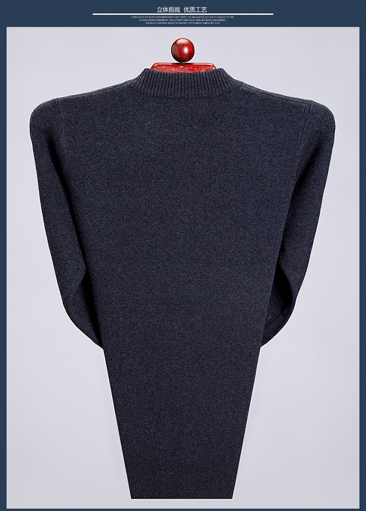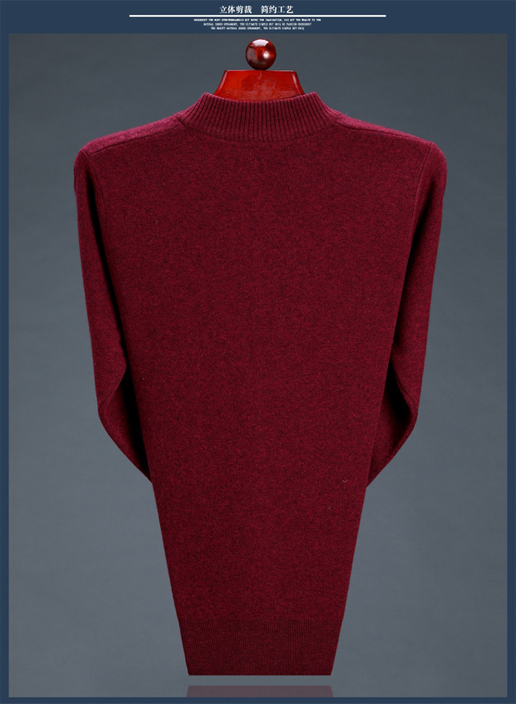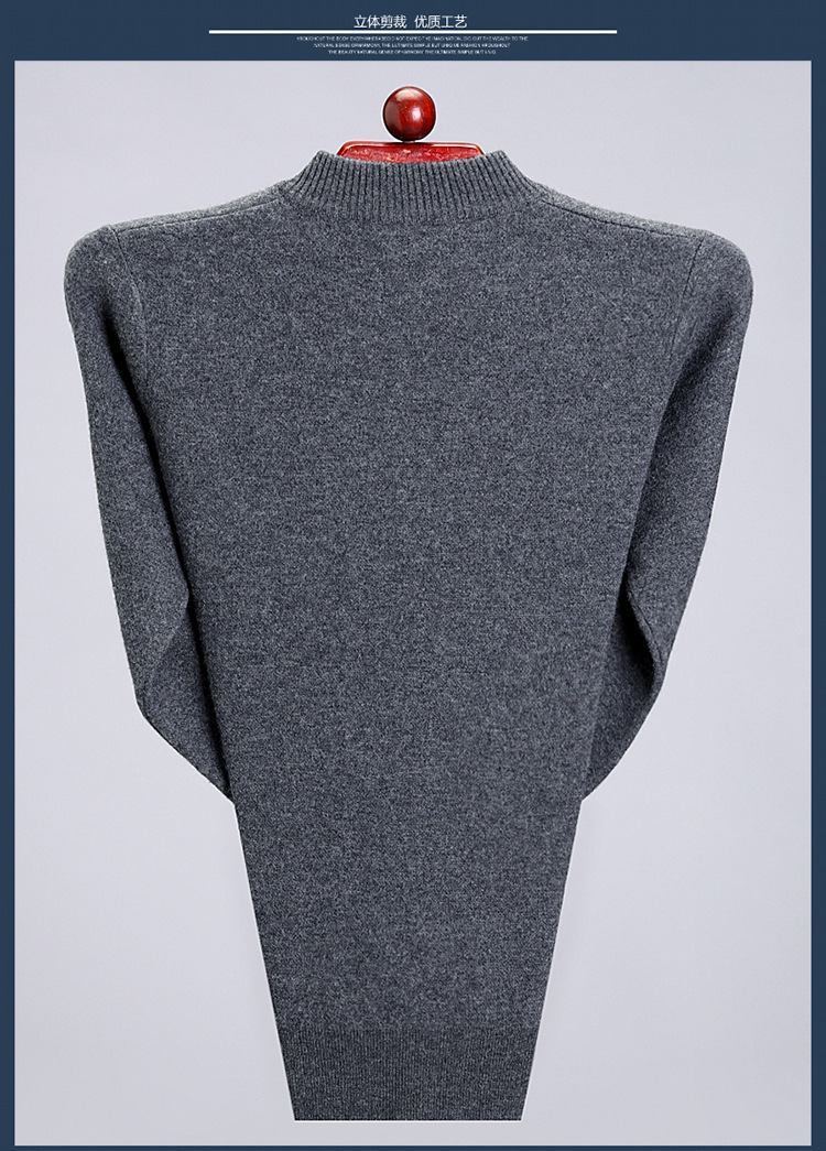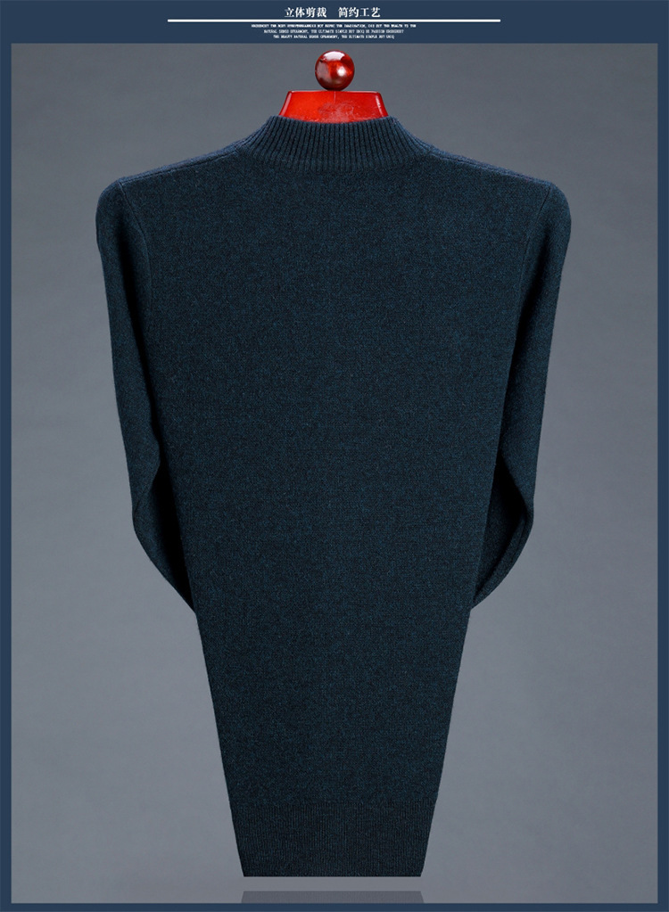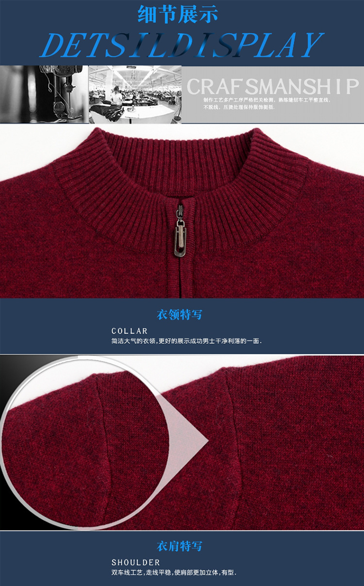 秋冬新款羊绒衫男厚款中老年半高拉链领羊毛衫男士纯色套头毛衣