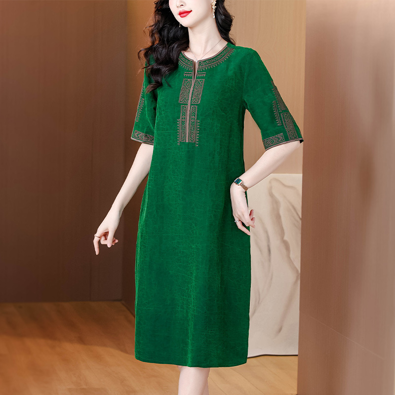 ブランドファッションシルク中国風レトロスカート 2025 夏の新中国風中年母親の女性のマルベリーシルクドレス