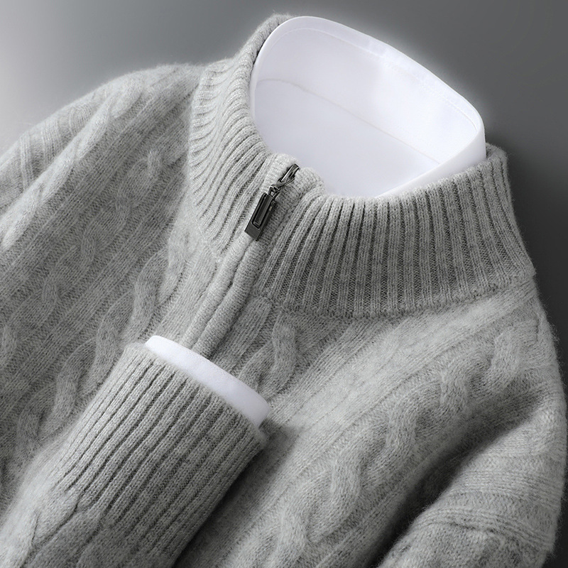 秋冬新款100%纯羊毛衫男士半高领拉链加厚麻花毛衣休闲宽松羊绒衫