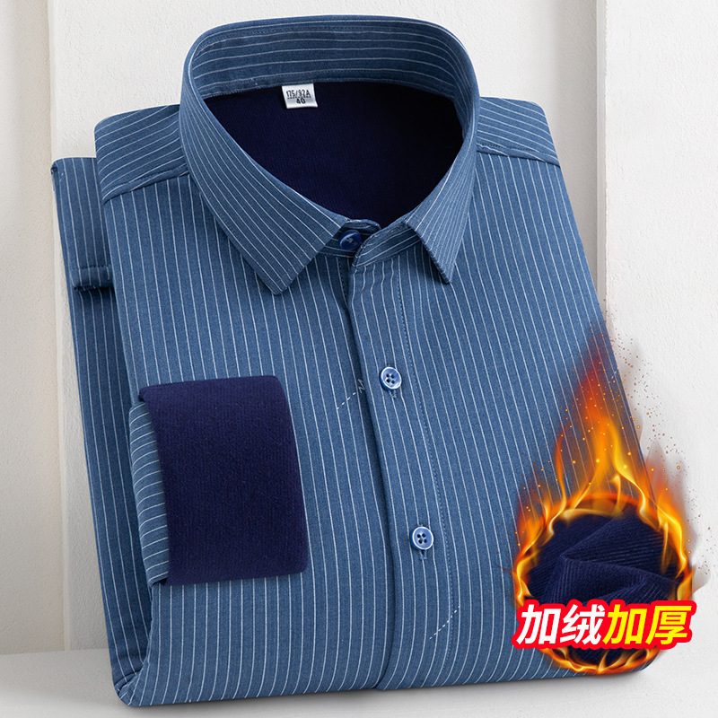 2024 秋と冬の新メンズ暖かいシャツ長袖ビジネスカジュアルベルベット肥厚プロフェッショナルストライプシャツ男性のための