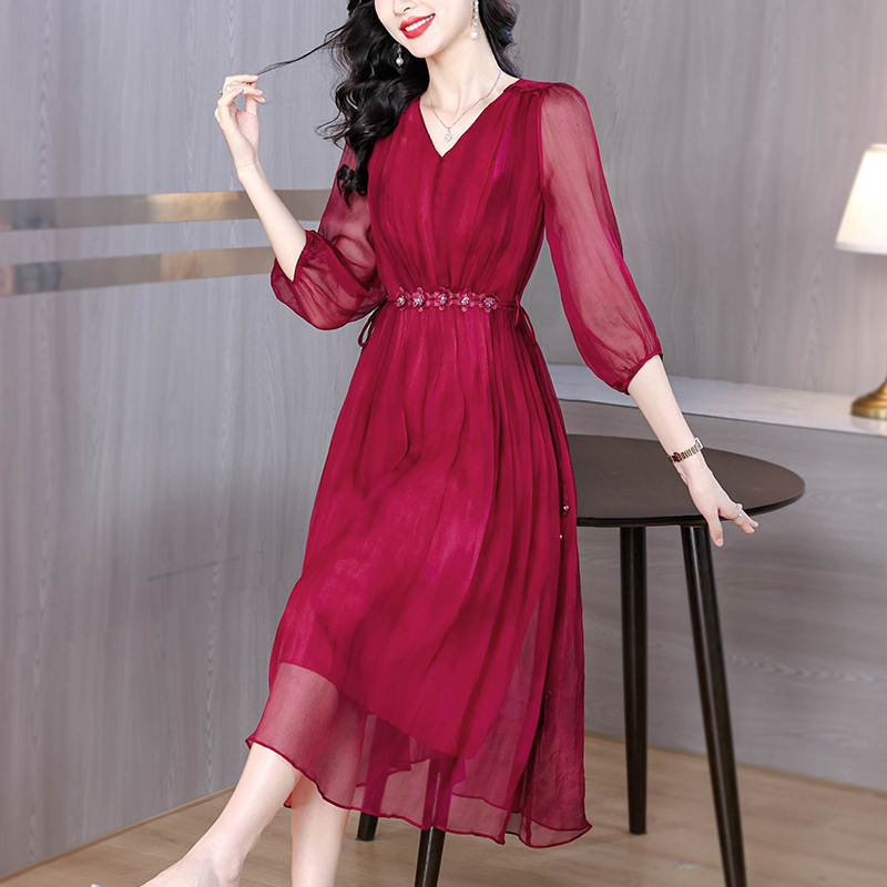 カウンター杭州シルクドレス女性のための 2025 新しいファッションウエスト痩身女性の気質桑シルクスカート