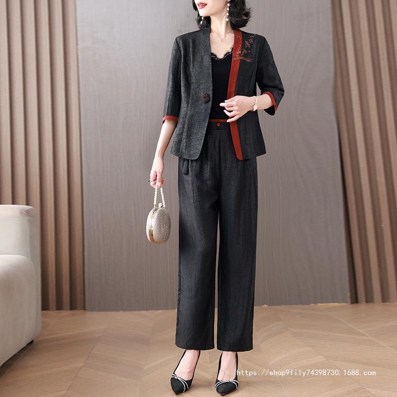 秋スーツツーピース20259点パンツ高級ブレザーレトロシルク香雲糸スーツ刺繍新スタイル