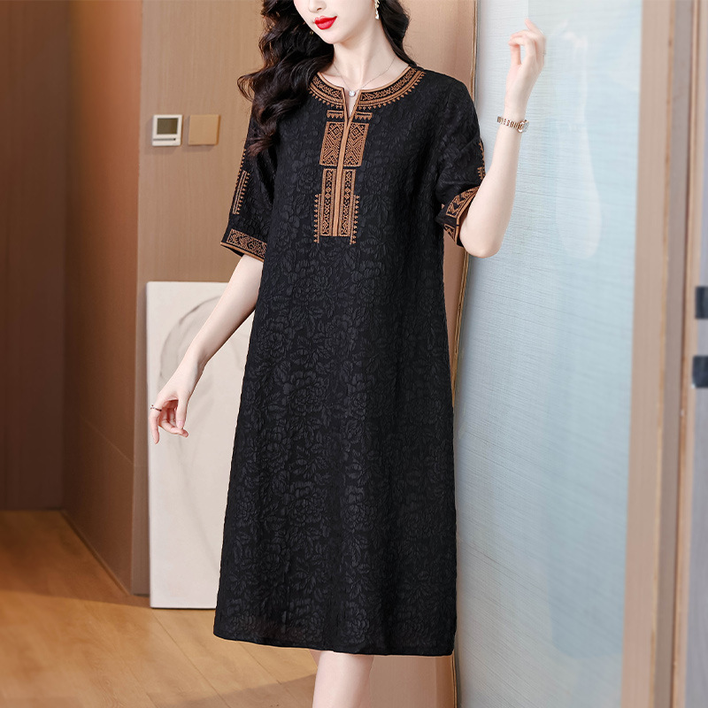 Xiangyunsha 桑シルクドレス女性のための 2025 夏の新しいスタイル中年母親ハイエンド亀ひび割れ刺繍ロングスカート