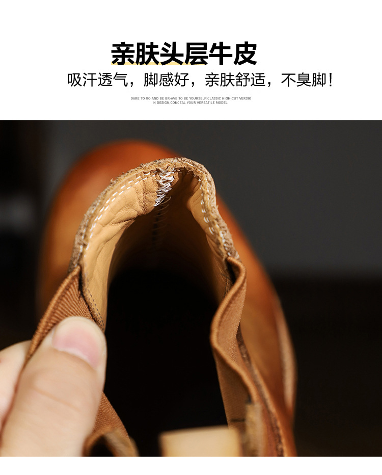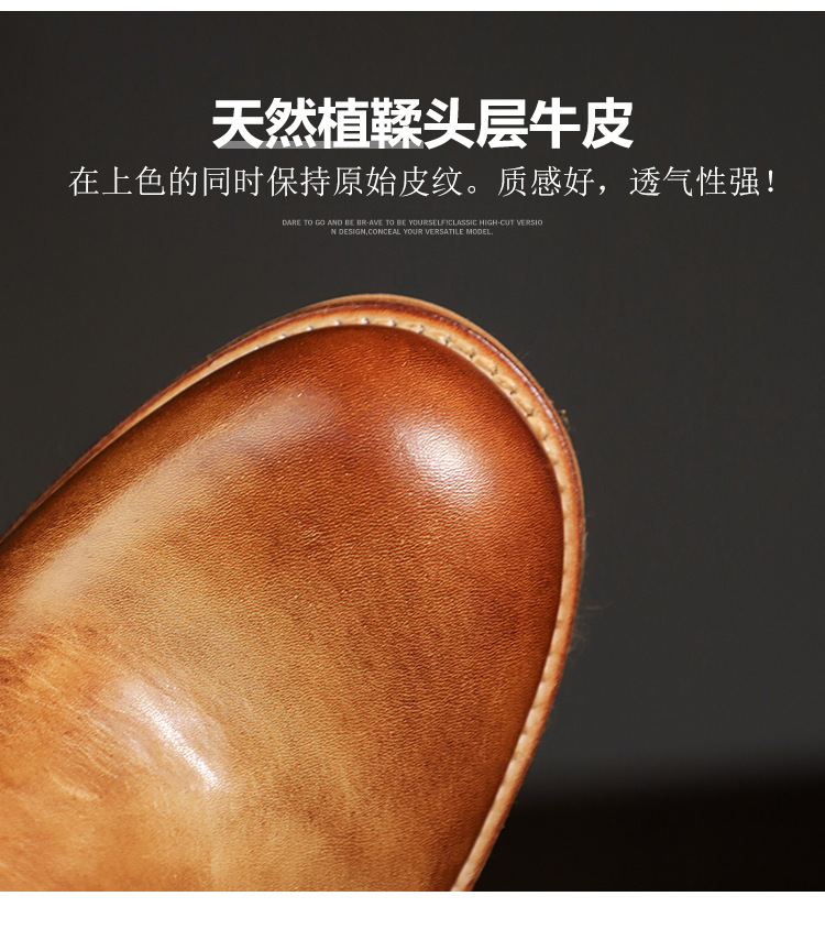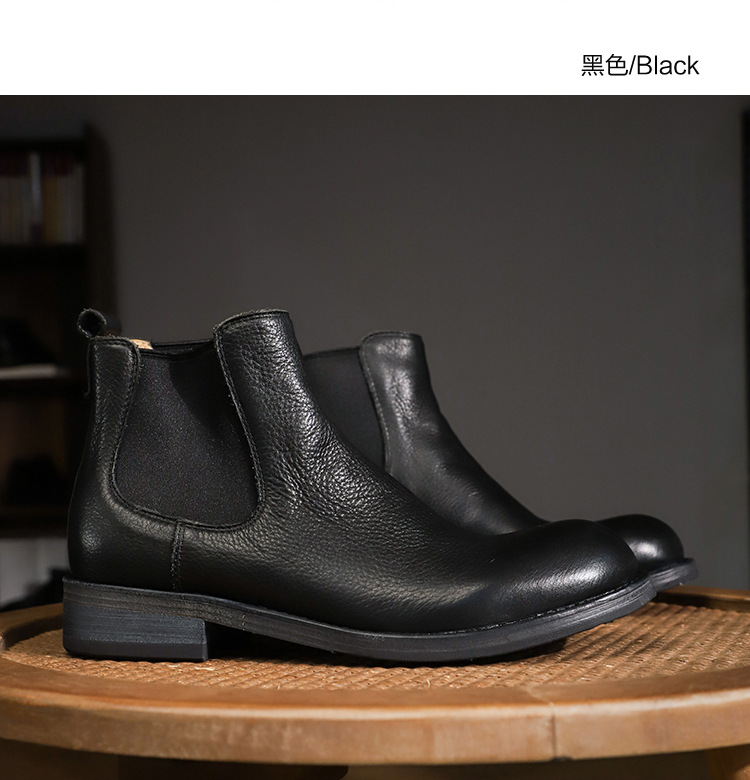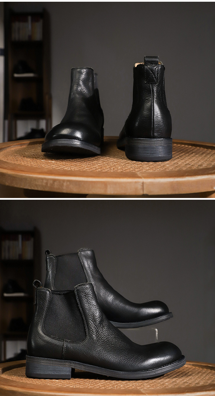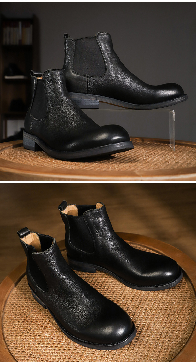 手作り手作り靴ウォッシュド植物タンニンなめし牛革メンズチェルシーブーツ英国スタイルスリッポンビジネスハイトップブーツラウンドトゥ